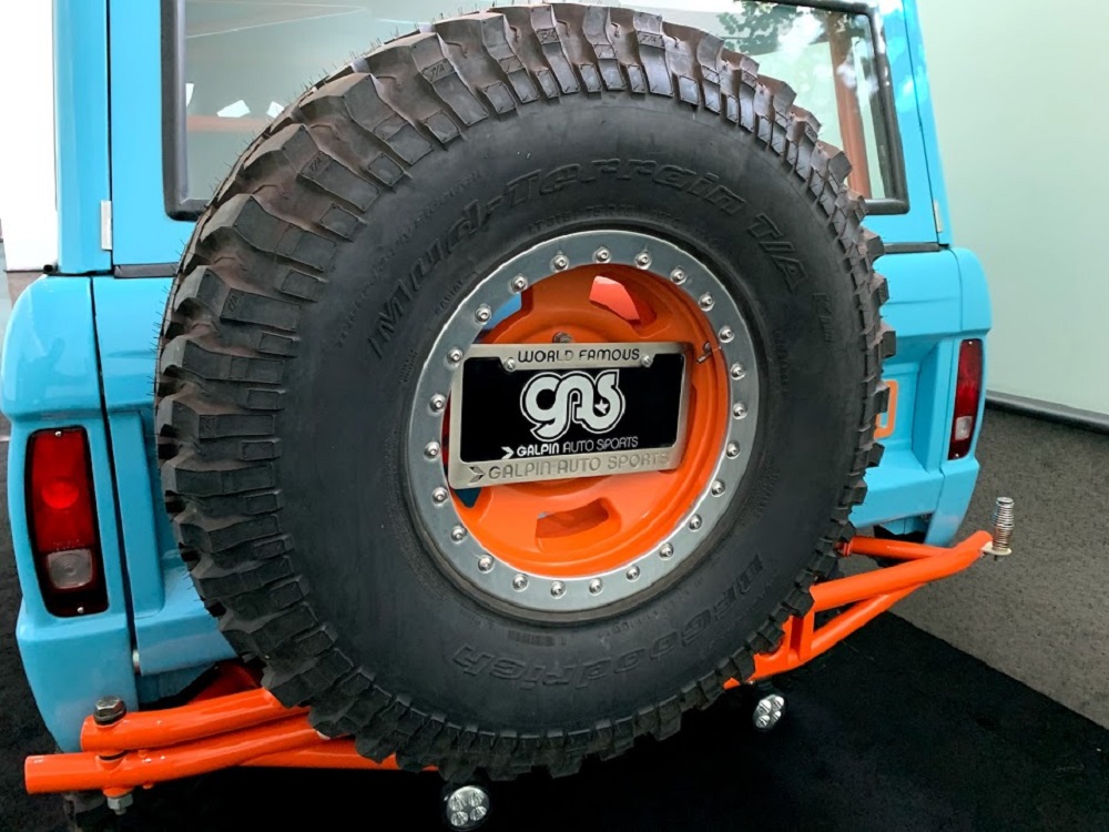 Built by Galpin Auto Sports, the first-generation Bronco Heritage is rock solid. The Gulf livery is synonymous with the GT40, and Ford’s domination at 1966’s 24 Hours of Le Mans. Perfect timing for the Bronco, considering Ford Vs. Ferrari just opened last weekend.