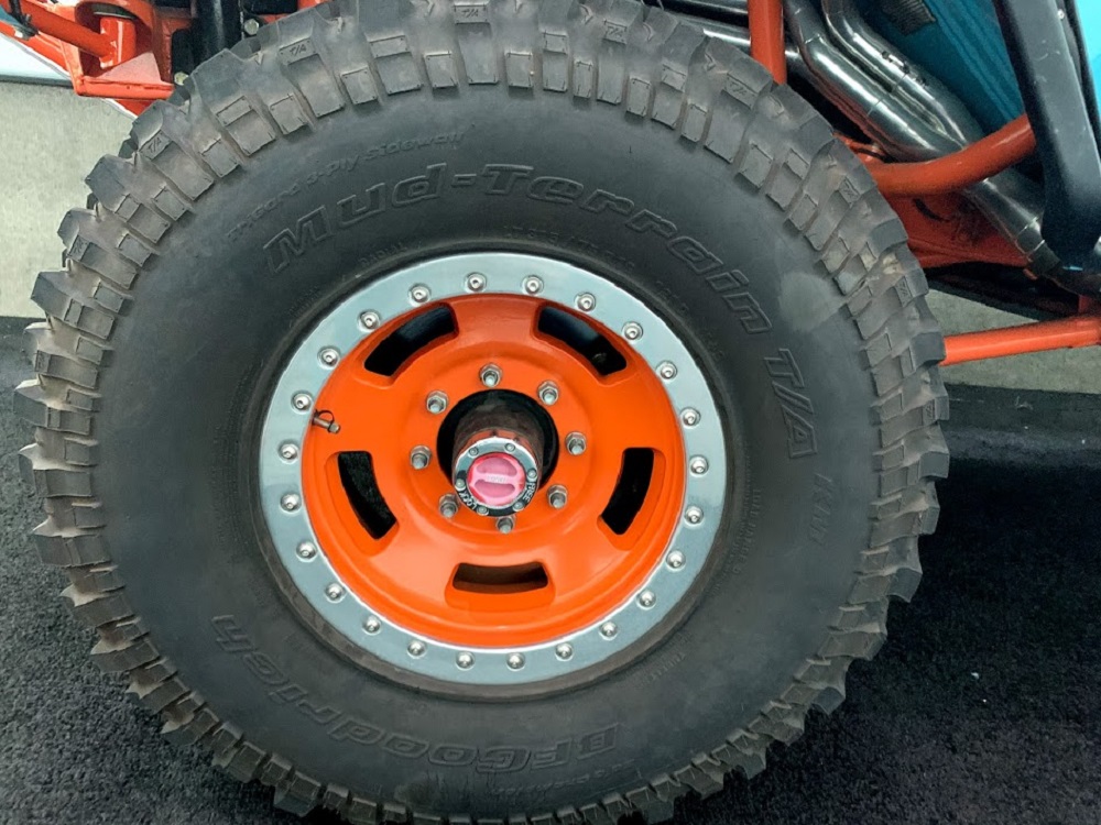 It rolls on beefy BF Goodrich TriGard 3-Play Sidewalls with 16″ Mickey Thompson Champion Beadlock Wheels by Alcoa.