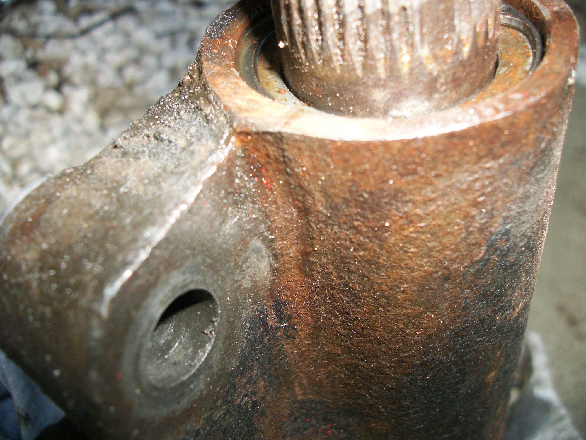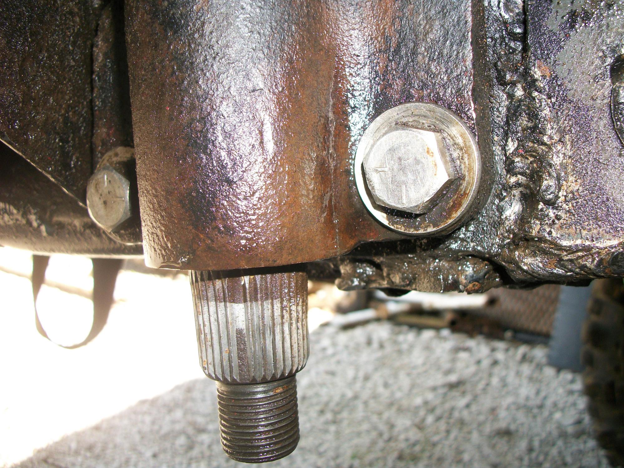 Then I hit a big rock in a very narrow steep V trail whipped the steering (again NO damper and almost broke my thumb. YES I normally wheel "thumbs out"). But still managed in the blink of an eye to free spin the system and bottom out the worm gear hit and split the thin aluminum end cap almost in half. Dumped my Sag p/s box fluid every where. I have since got a 1" thick end cap, got it and the top cap drilled and tapped so I can run hydro assist steering some day.