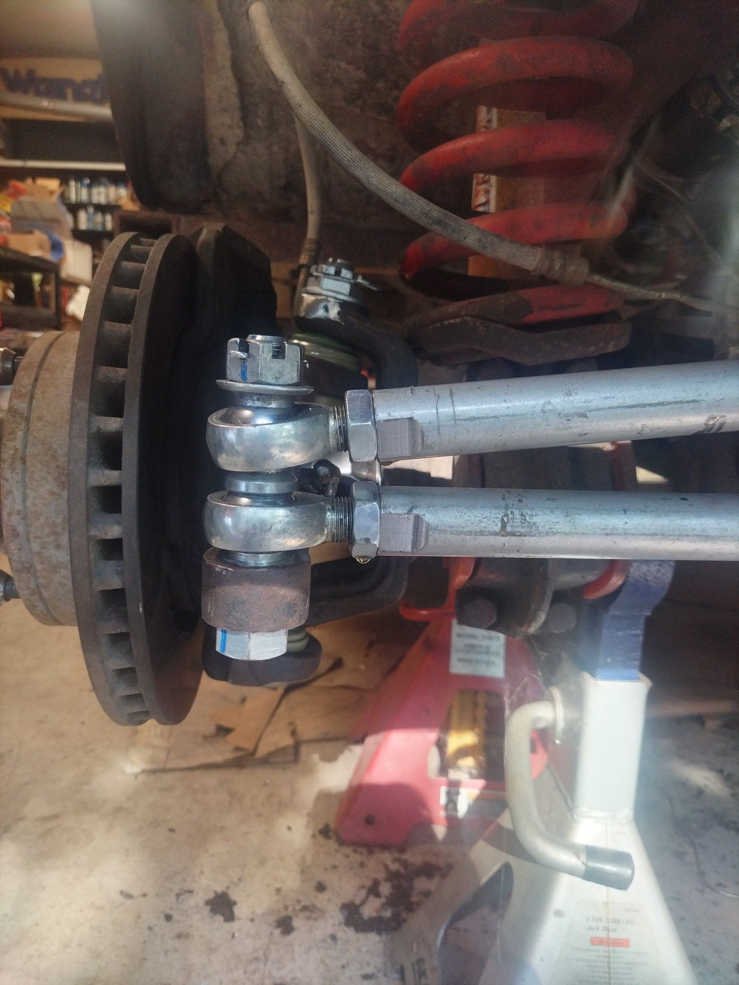 Well steering parts are test fit installed, I need to do some more work on the knuckles (welding) and probably need one more short spacer to be able to get the 42* of articulation out of the heim joints. But I am getting there.