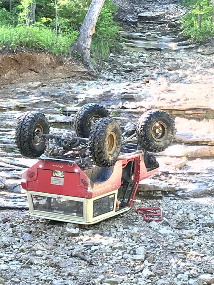 This is NOT a RC car pic, I know this trail head, it is the start of Double Whammy. He is at the bottom on the L/H side of the start area. I tried to climb it once before, but I stopped before I ended up like this guy. Dang that is a SOLID roll cage.