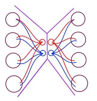 Since the manifold divides the carb in two, you can see that each cylinder only gets one primary (blue) and one secondary (red). So two barrels total, or half the carb.