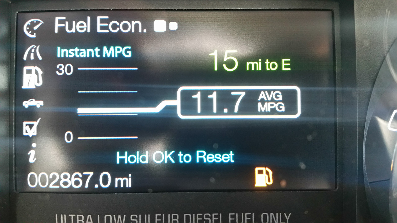 Unhitch and again driving 16+mpg, heck even 20mpg highway and the DTE doesn't reflect that... hit 1/2 tank and says 175 DTE... umm no it's more like 325 DTE