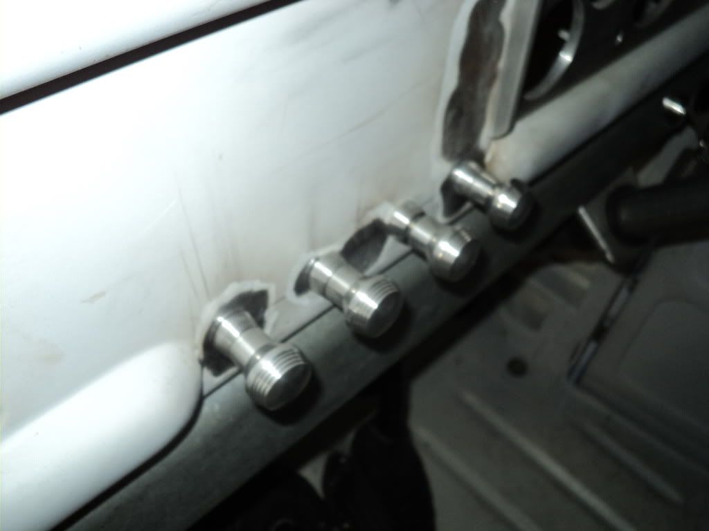 Hi everyone, just thought I'd touch base before dinner is on the table. I fitted the heater hoses ( no clamps yet), the other 2 bulkhead fittings are for A/C, the dash ***** are SoCal. Started a frame for the tilt setup ,it will bolt in the 6cyl position in the fenders to give the A/C condenser clearance.
