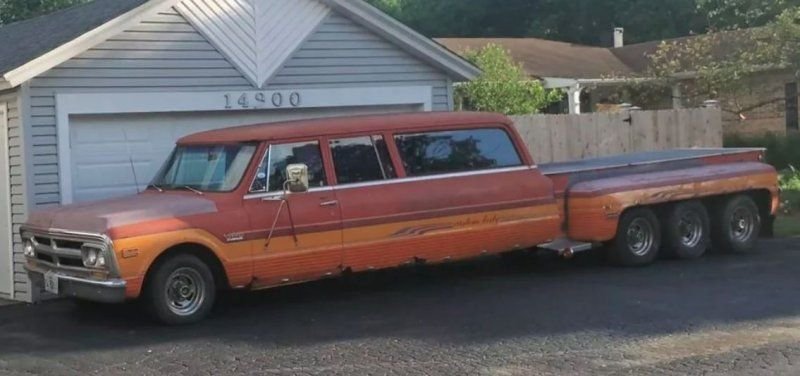 "Built to transport Dave Nettles' dragster and crew. Dave: "I built this thing from a 4 door station wagon & a Ranchero, beginning in about '77, painted it in '81. I stretched the frame 28 1/2", made the rear doors from wagon rear doors (the front 4 or 5 inches) and 2 door sedan doors (the remaining rear section) along with a Ranchero rear half. I actually built it pretty much like building a total loss. The side moldings are factory pieces except the 1/4 panels. They are the rear section of a customline with a piece of the 4 door wagon molding cut to the right length and slid over the customline splice sleeve. Plus I put in a Ford truck power gear, a tilt column, and a well built 460."
