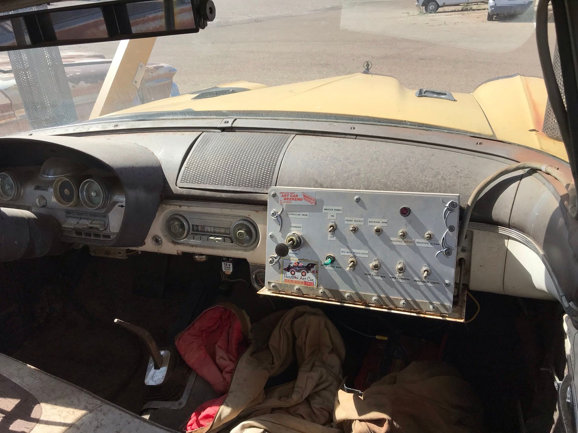 i read a writeup on the edsel many years ago. got the car cheap, but could not resell. so the bucket and backhoe were add as a joke and it was put out front.