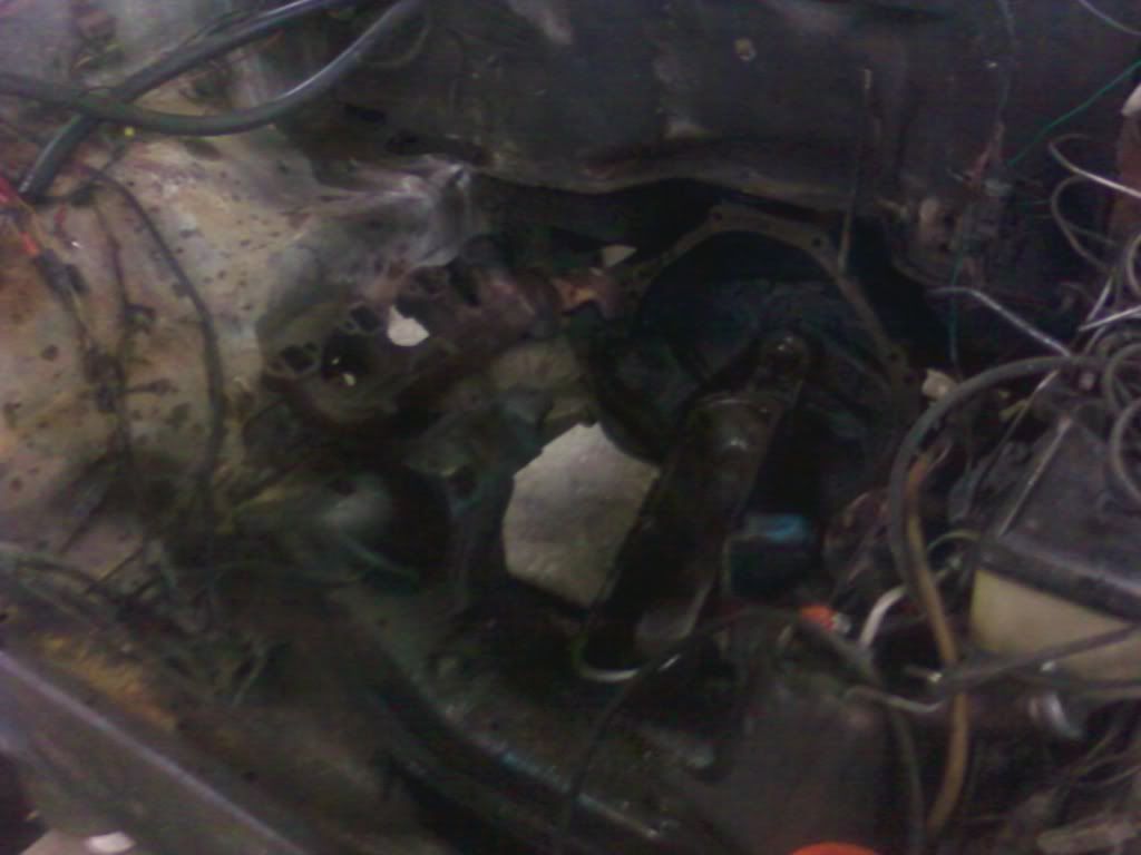 Well I just got home from work and Wendy's and had another very successful day. I got the clutch linkage hooked up. I was having a little trouble getting the clutch fork back to get the rod on it but I finally got it. After that I got the transmission crossmember bolted down and had to call it quits on the mechanical stuff.