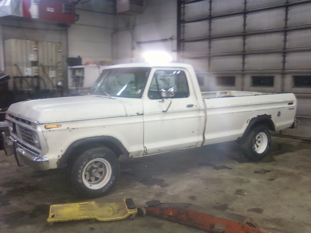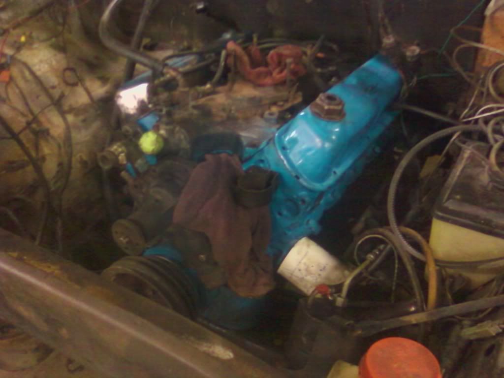 Well I kinda had a duh moment today I wasn't able to get the truck in the shop today to work on it because there wasn't room but I got under it outside and was looking I saw why I couldn't get the transmission hooked up. When I pulled my 302 the motor mount on the drivers side was loose and I tighted in up. Well I didn't tighten it enough because it slid back down to the bottom of the tower.