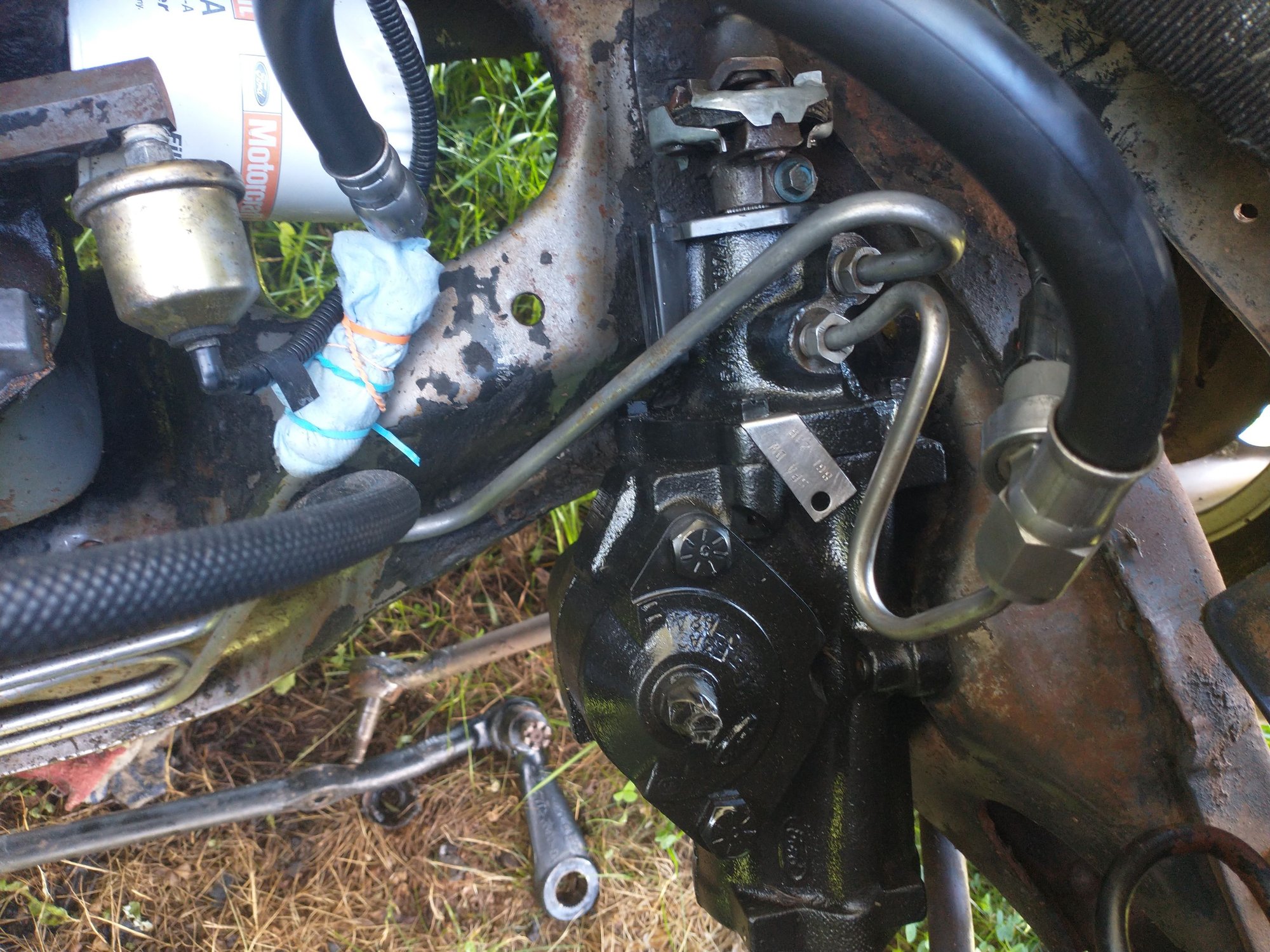 steering box removed, cleaned, resealed, repainted and re-installed. Lines cleaned up very nicely. about to dig into the front cover work now.