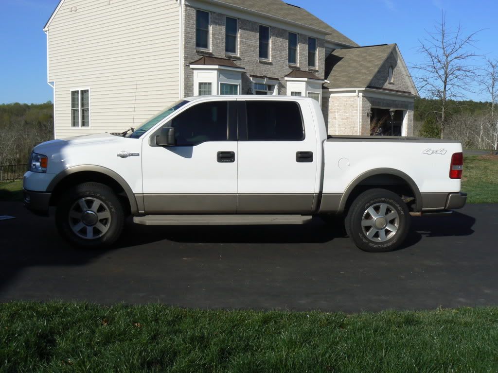 Here's what I'm starting with: White 05 F150 King Ranch basically stock. It's in great shape for stock with 66K miles on it but who really wants a stock vehicle. It's got window tint, Rhino lining and the Gotts mod already.