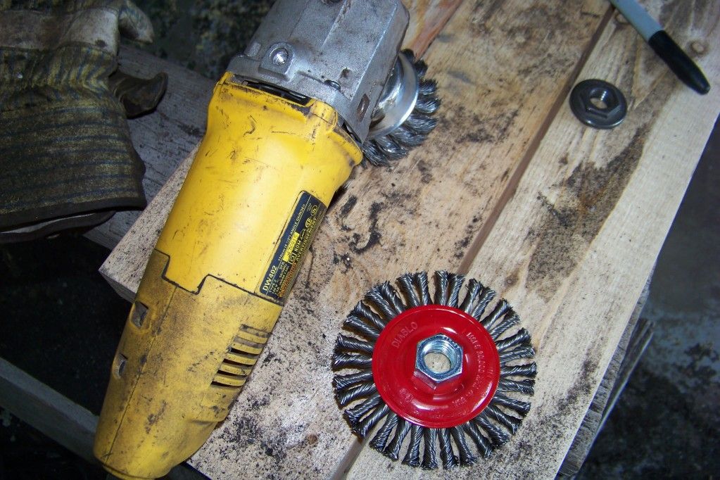 Be careful using a rotary wire wheel since pieces of wire can fly off embedding in your skin or an eye so be sure to use proper protective clothing and eye protection too.