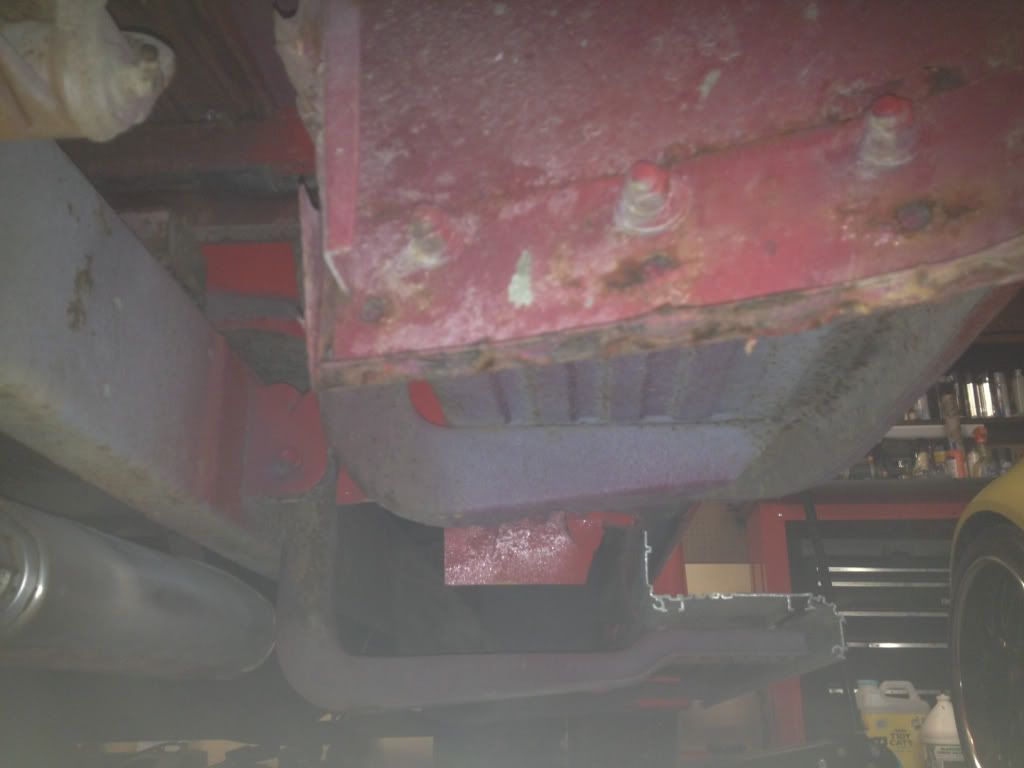 As far as the mounting bracket goes, I would get one from an F100 that attaches to the chassis like the front two. Least that's how I'm doing it with my truck, first I've seen it attached to the bed like that.