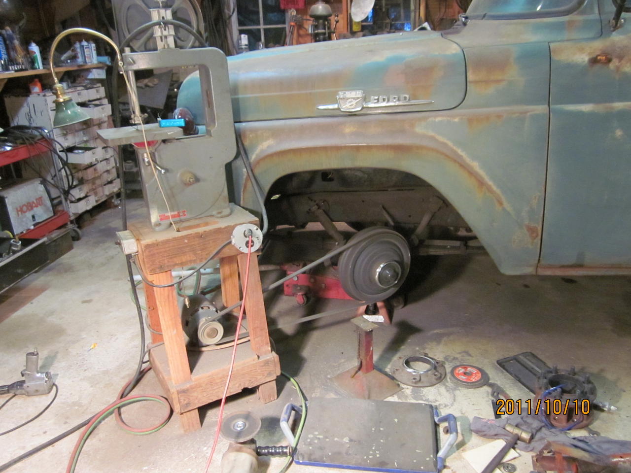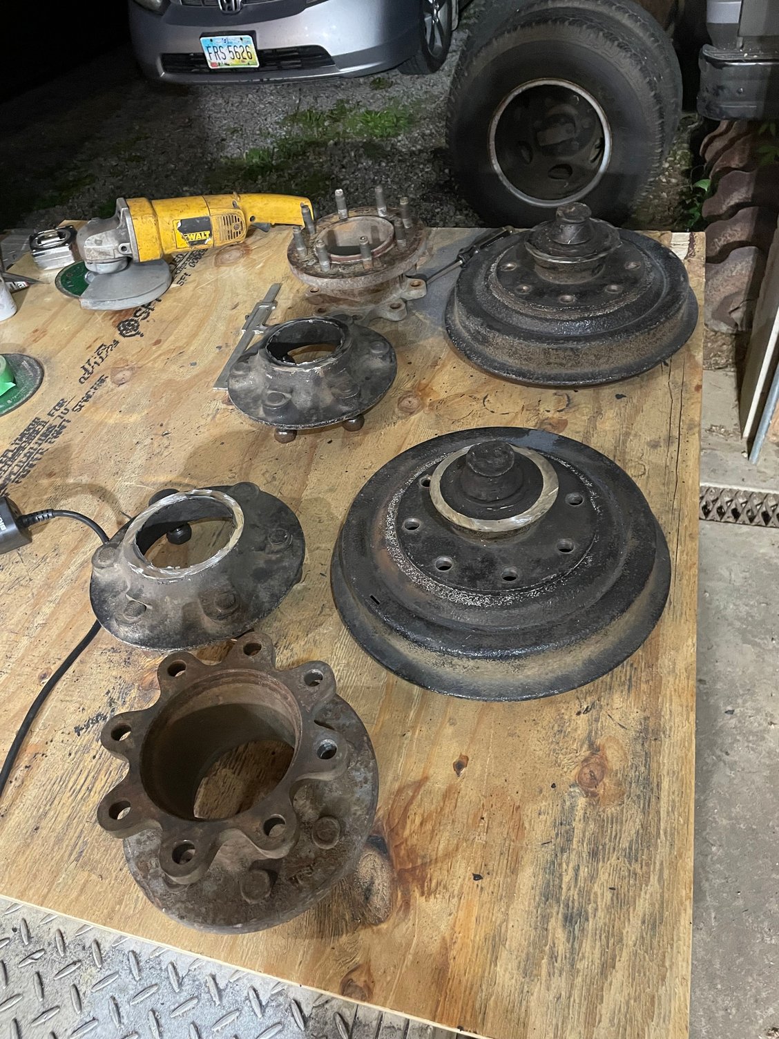 This is for the F350 version... '53 to '66. Maybe this isn't appropriate for your F4 because you said five lug. I didn't see how to post a photo on a pm. But if you want to convert to an 8 lug modern rim, this is what I did. I cut off my six lug F350 flange with an angle grinder. I had the hub spinning from an electric motor from an old bandsaw as seen in the photo. Cut with a cutoff wheel on a 10" angle grinder. Used a 'toledo adapter' from wheeladapters.com. It bolts to the 8 bolt on 6.5 pattern that holds the brake drum, after you get rid of the old school 6 lug flange. This should be done by a machine shop, but mine came out fine. 65 mph, no vibrations down the road like a magic carpet ride. Anyways here's a couple of pictures of what some say isn't possible. I later welded the remainder of the hub to the toledo adapter, JIC.