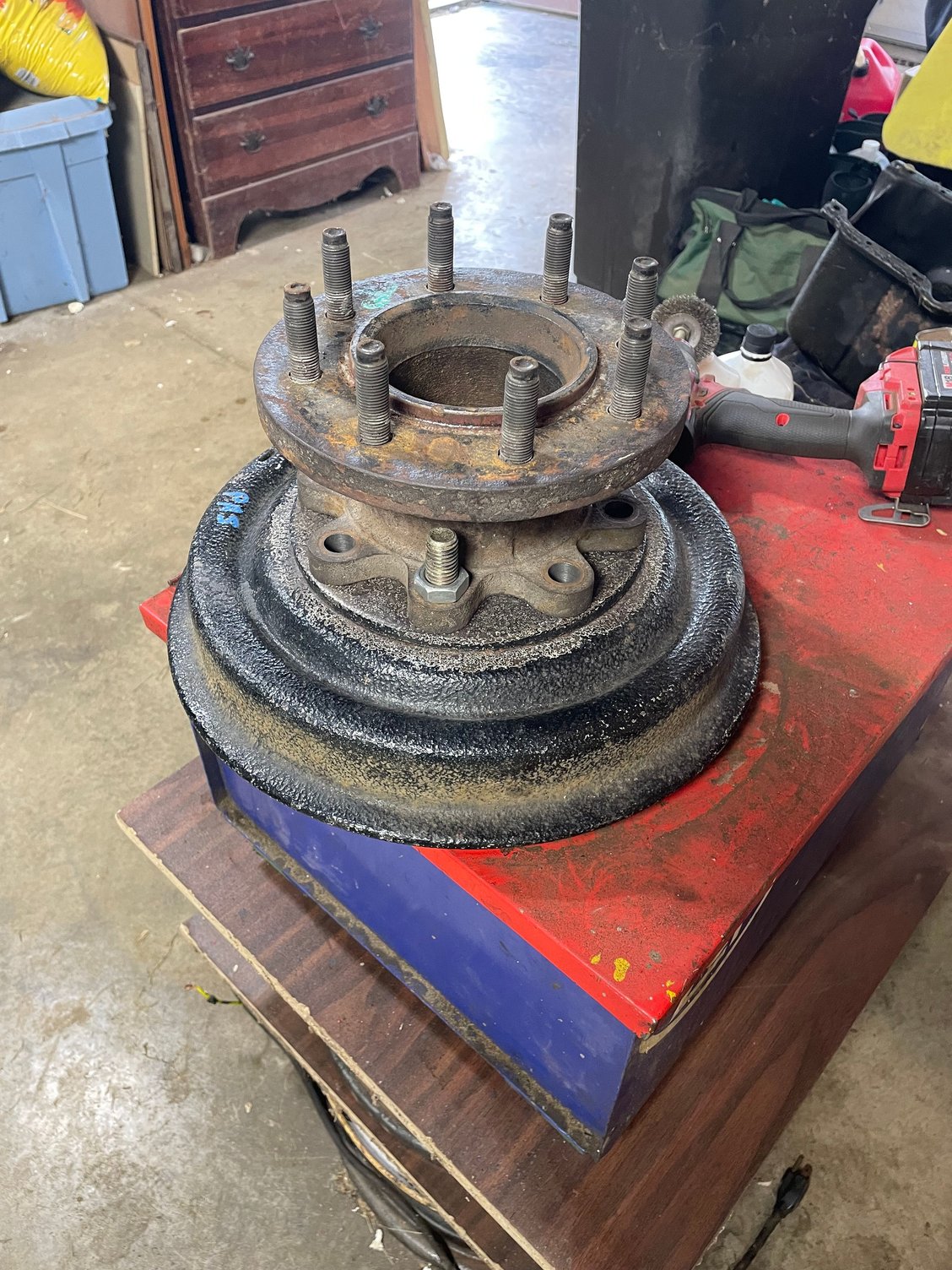 Many thanks for this information. My hub to wheel is five lug as well as the hub to brake drum is five bolt. Wheeladaptor web site says they don't do different bolt pattern adapter but they contradict themselves with a new offering of eight to ten. I will contact them about making such five to eight lug adapter if I run out of options. I am trying to determine if a later hub may fit the spindle of my F4. Homemade, Garry has a conversion to eight lug on his new hauler and is trying to determine what was incorporated in the change. He said it looks like some kind of adapter, spacer.