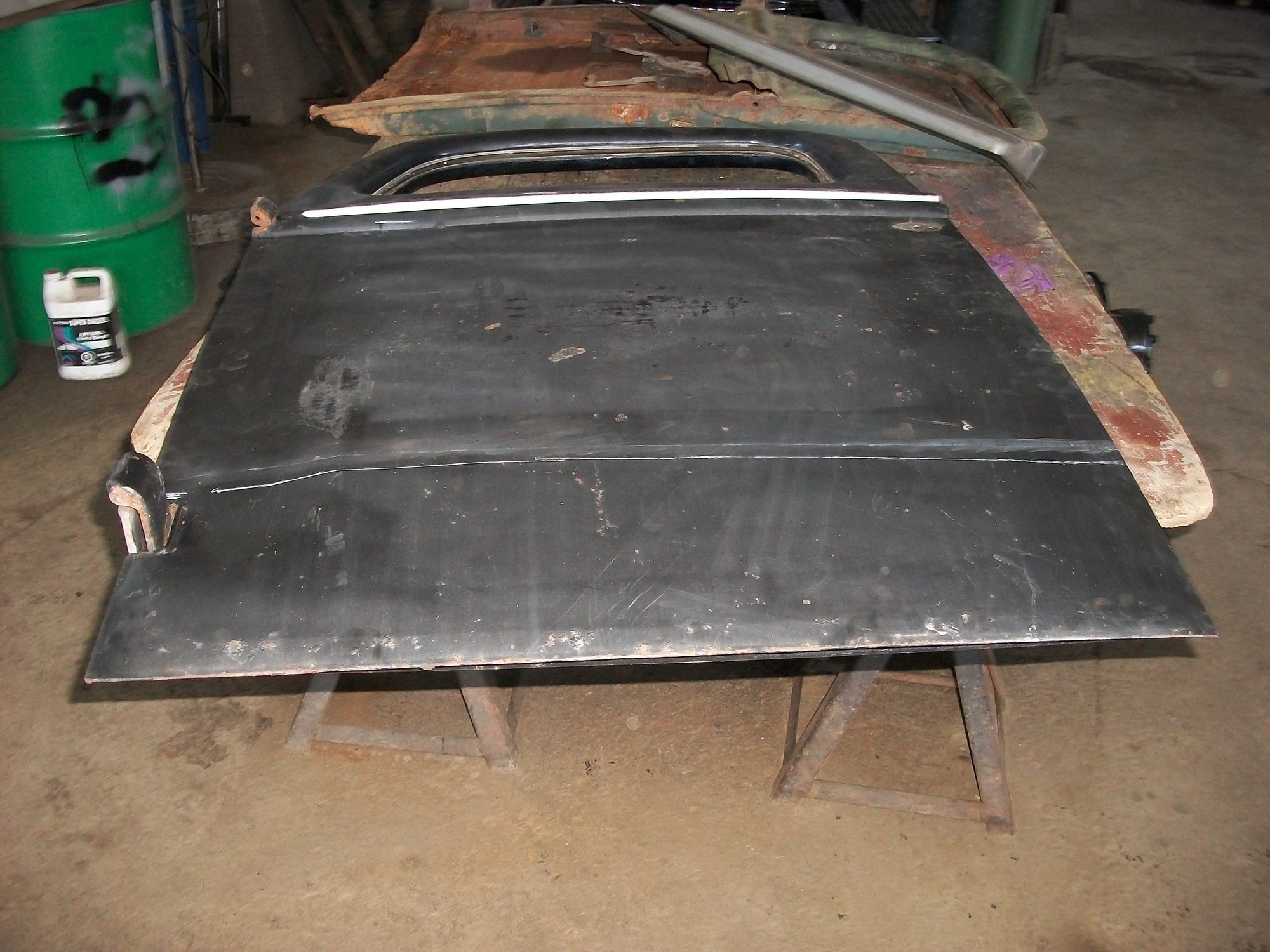 me and buddy put 5 hrs of quality time on cab seam. truck probably had logs and rocks fall on cab. didn,t really get a before picture! found one in my camera but it looks better than it really was. both corners were badly abused,especially driver side. driver side must of been close to 1inch lower seam line. with a hydrolic jack a alot of massaging we got it back to its place. theres still more finishing to do before paint,but i will see then. i don,t want a show truck! but a work truck,that looks straight.