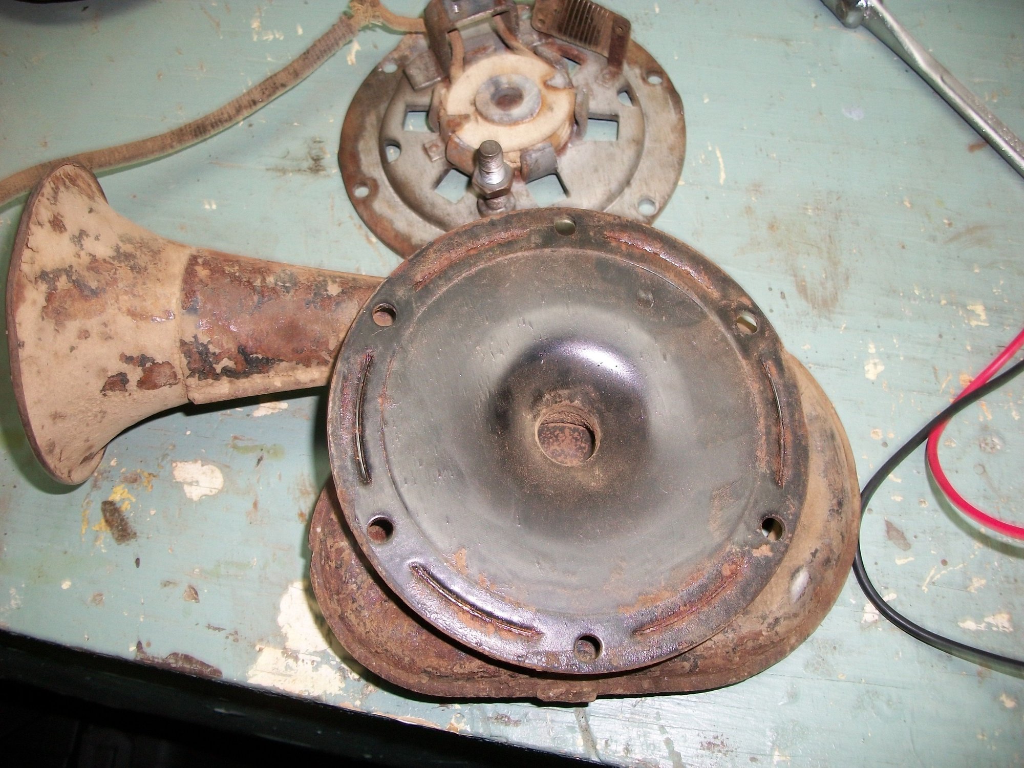 i was sure it was original to the truck! then i notice the horns on some other rides here. it doesn,t work try different voltage . there was some kind of relay on the bracket that held it to the frame. i will be doing some research on it. it seems quit complicated for a horn.