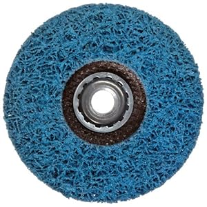 This disc got all of the gummy, old paint off and seems to be lasting a long time. Saved on a lot of sand paper. It also seemed to not dig into the metal too badly, it did make sparks but I tried to not to make sparks as much as possible. After I had all of the paint removed I went over the area with 180 grit paper on my DA sander.