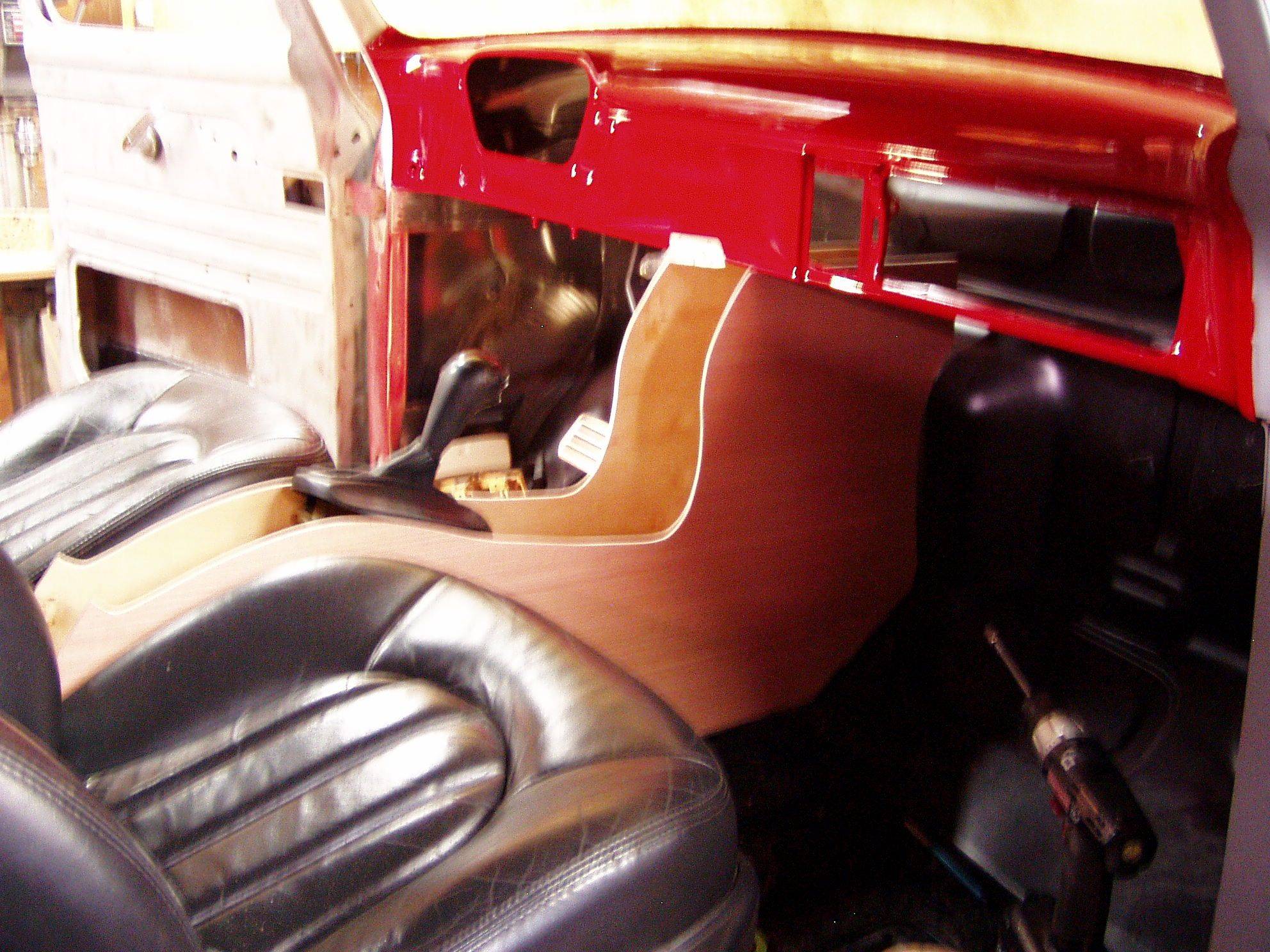 Part of it will be painted, part will be wood. The wood that you're seeing is really just cheap plywood that is not very strong by itself. I will use fiberglass mat to strengthen the console and give a surface that I can bodywork and make changes a little easier. I plan to use some more of the cherry wood like I used for the instrument panel.