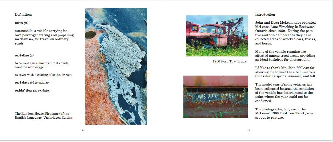 The book "Auto Oxidation" is now available at blurb.ca in the Arts and Photography section. You can search for the book by title. Below are some screenshots of the book.