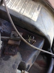 I have hot water in both lines going to the heater core, but no heat. I suspect that it may be the door on the housing under the hood. It is stuck in the position shown below. I do not want to open it all up at this point to free it up because if I do, I will need to drain the Freon. So I want to test all I can first.