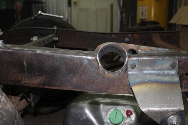 I had to do some things a little different because of the suspension set up I have, it's a TCI kit so needed to weld this plate to the shock cross member to support the tank.