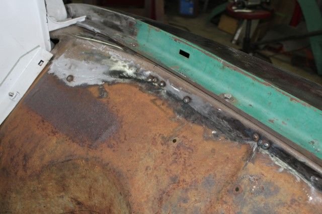 Worked on the inner fender again today, I had made a template out of cardboard and marked what needed to be cut out for the control arm then cleaned up the area to be welded.