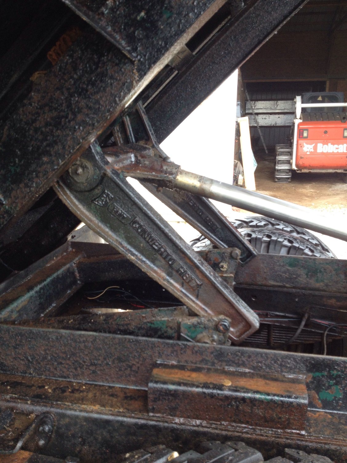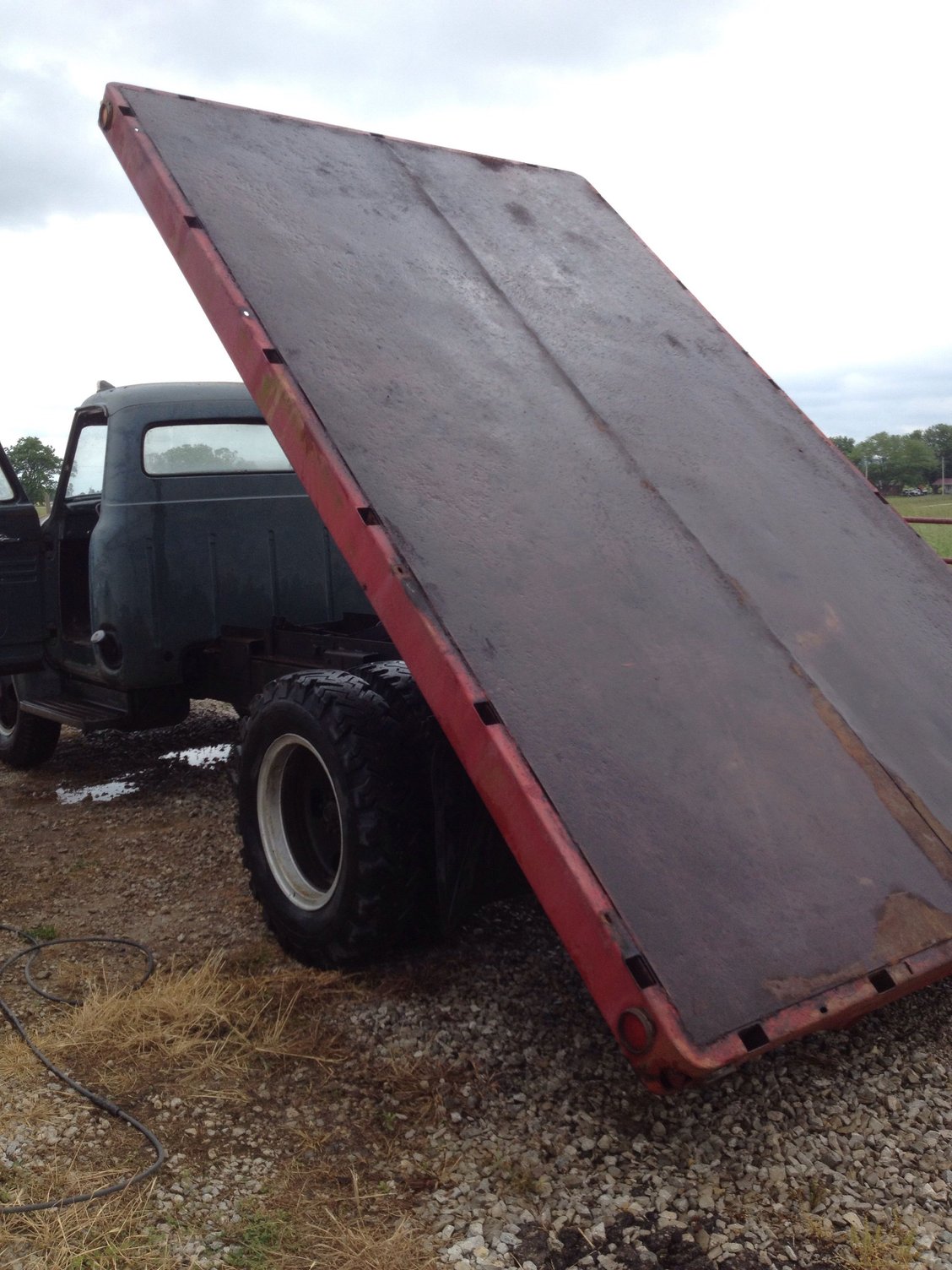 The 55 f600 I just purchased has a 12' steel flatbed with a A1 condition siscor hoist no wear in the pins, just took the grain sides off it. Wood all rotted on the, but the stakes are metal as is the frame work. It's a factory made bed, crossmembers in good shape.