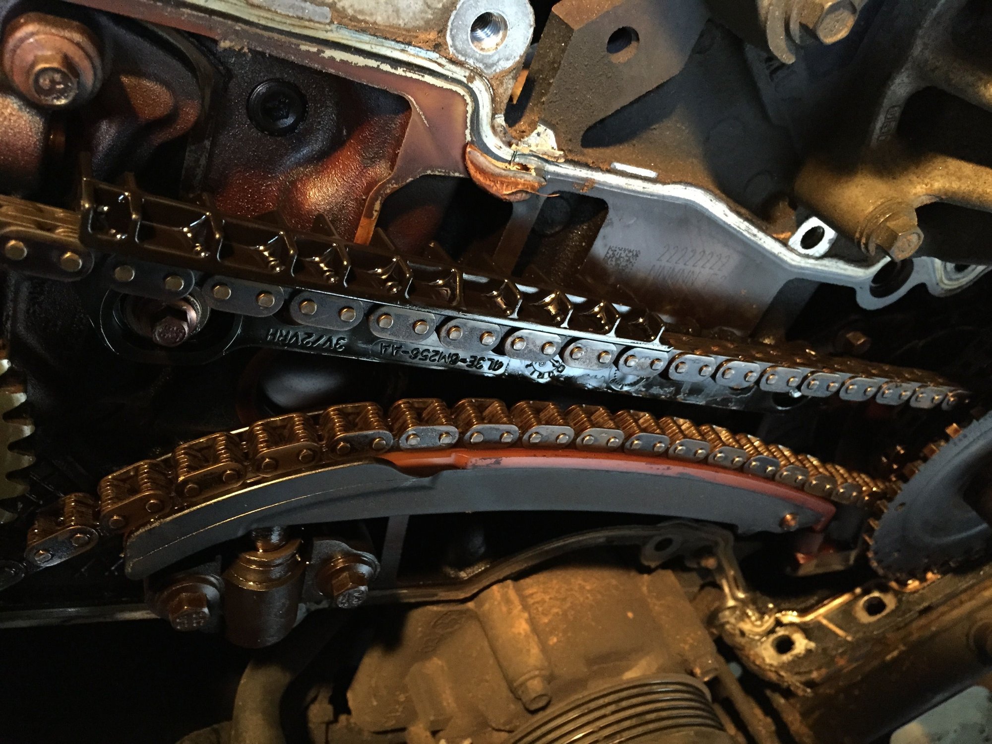looking at the condition of the drivers side chains and the amount of RTV on the front cover this is the second time this job has been performed on this engine.