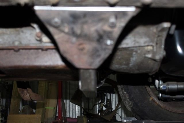 , sorry , this pic is a bit blurry. I put alignment holes on each side to make it easier to bolt up, without the cross member just the weight of the cab starts to twist the frame rails.