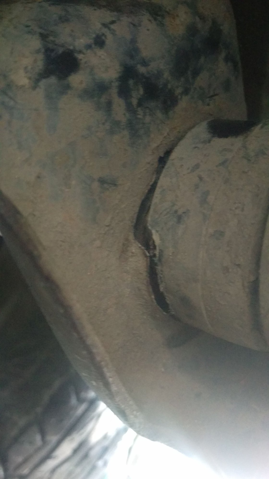 Passenger side 👎😨💀 <br/>When i took off the nut (twisted off with the bolt ...so i have that to replace now too 😒 ) part of the piece thats closest to the bracket where the gap is, about a tgird of a circle of a piece, fell onto the ground.