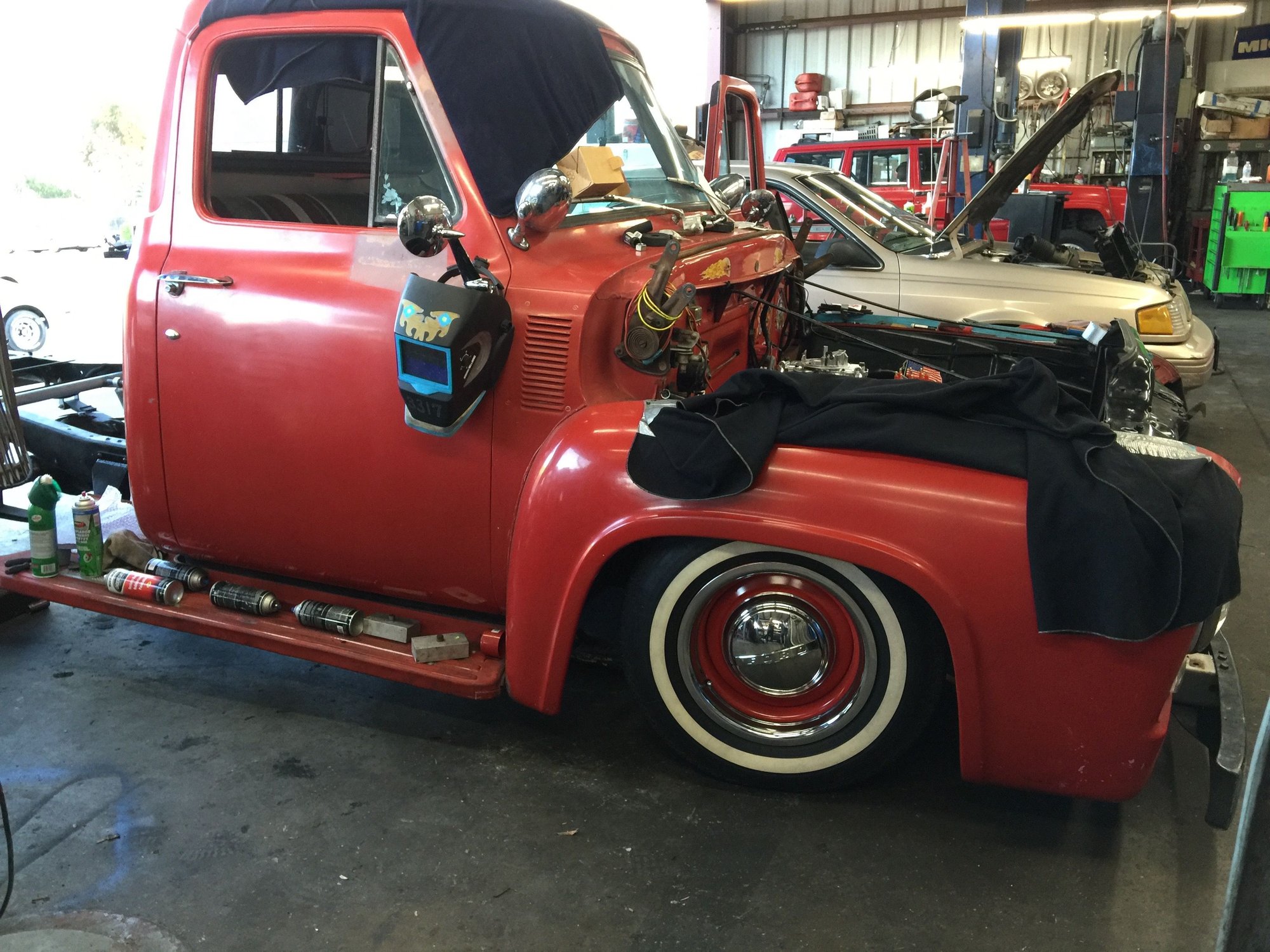 It also meant I was going to have to get new wheels. I didn't have those yet so the guys at the shop took some off of a Mustang they had sitting around so they could roll it around the shop. They looked cool but were not going to fit with the bed on.