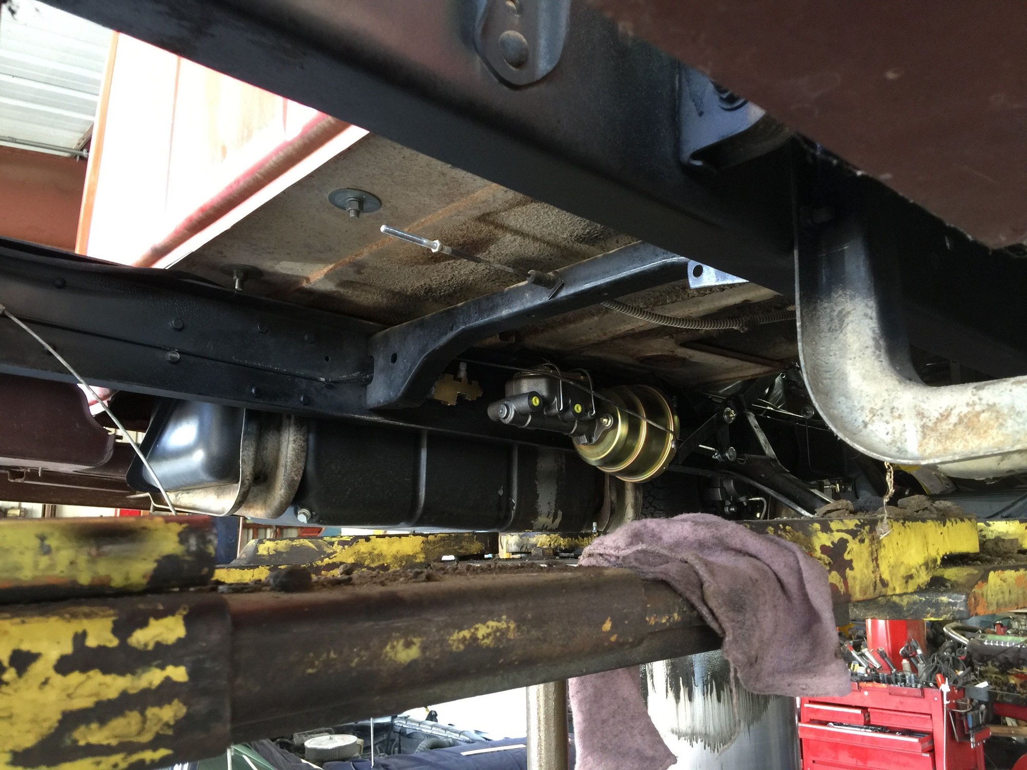 The tranny crossmember needed a notch cut out to make sure the brake booster didn't clip anything.