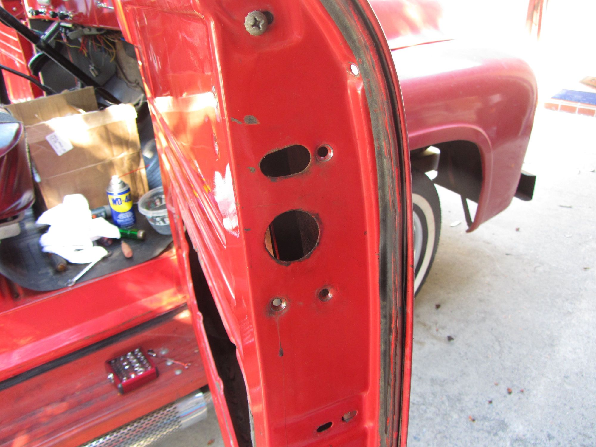 After almost falling out when the door opened up on me going around a turn, I learned about Altman latches and installed them. If you ever want to get your heart going, try shifting, holding on to the steering wheel for dear life, and reaching out to close the door doing 7-8 mph making a turn. This was a therapy truck not a physical therapy causing truck. The star latches had to go!!!! So in went the Altman latches. I really like them except for the part where you CANNOT lock the truck from the inside.