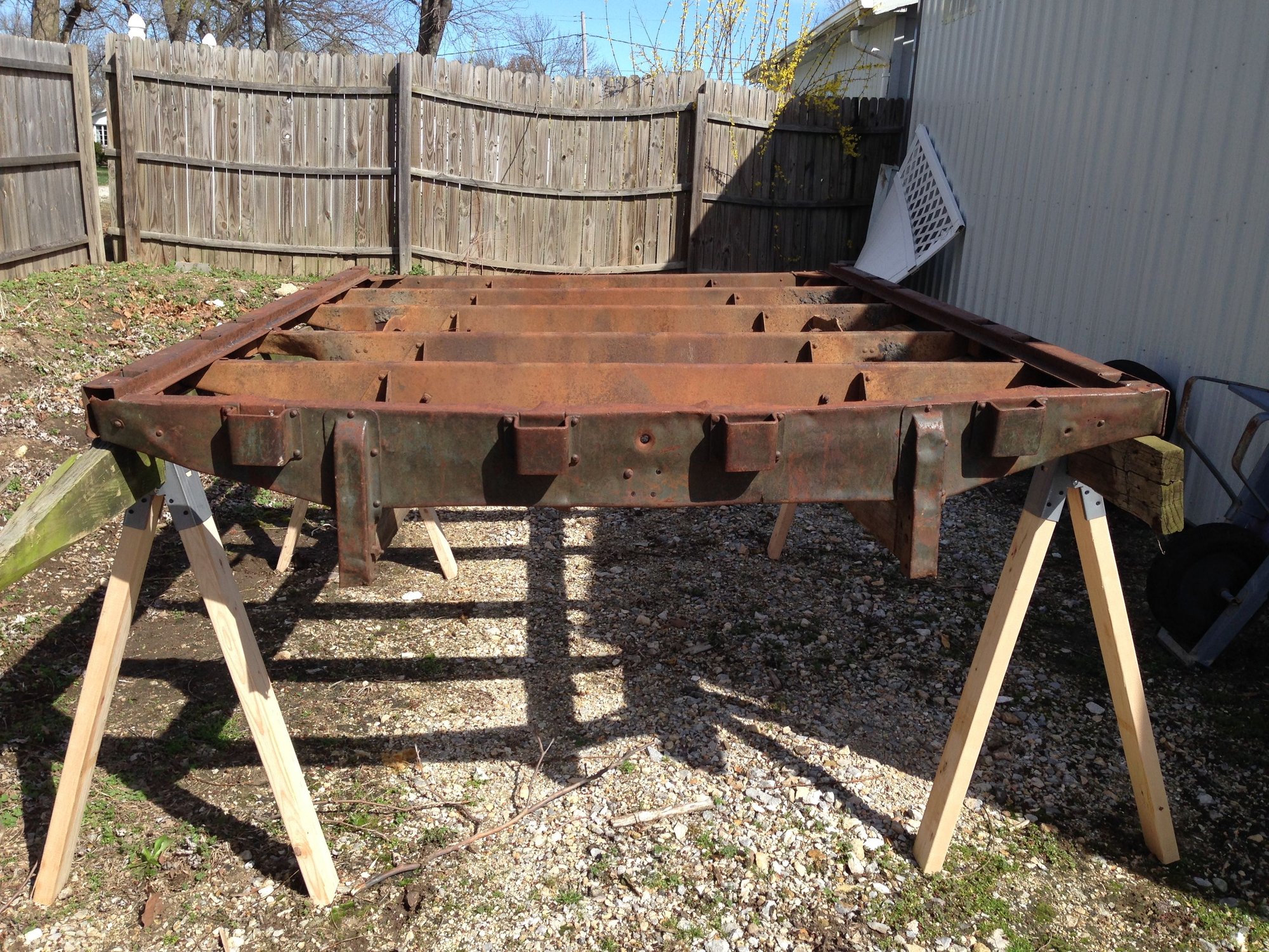 I also happen to have a 8' Ford script bed frame if you know someone who is interested. It needs blasting and all the angle iron crossmembers replaced but the main frame and mount crossmembers are solid. I'm in Michigan though . . .