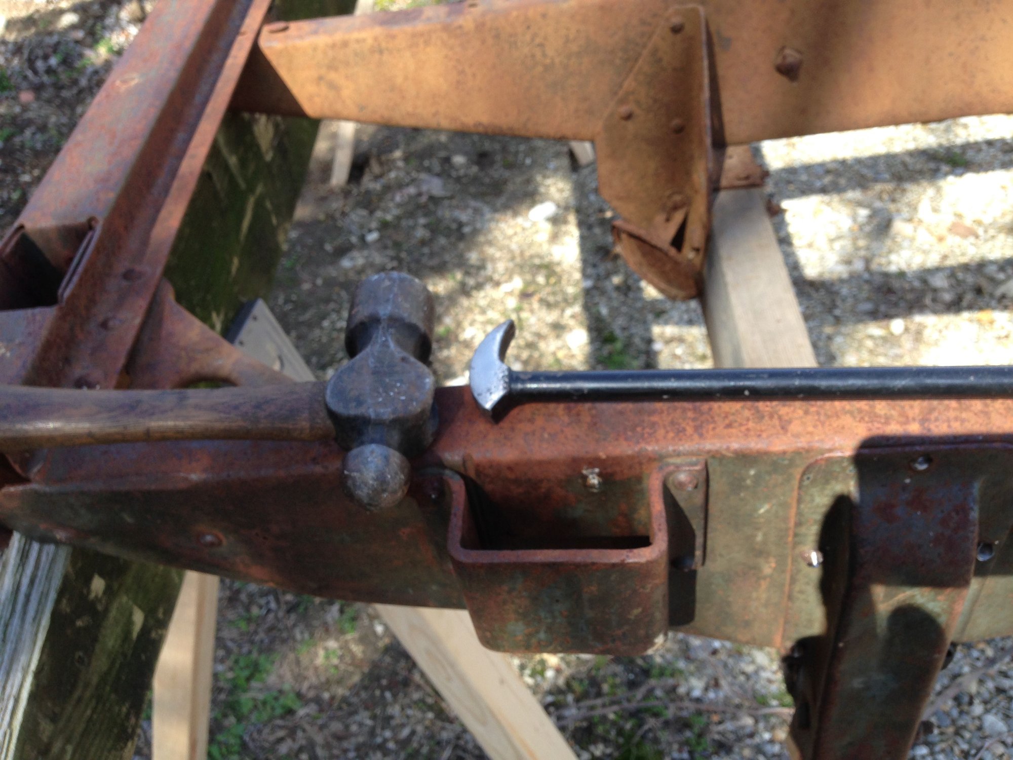 I then took a big ball peen hammer and this $3 Harbor Freight pry bar and knocked the heads off. Most of them just took a couple of whacks.