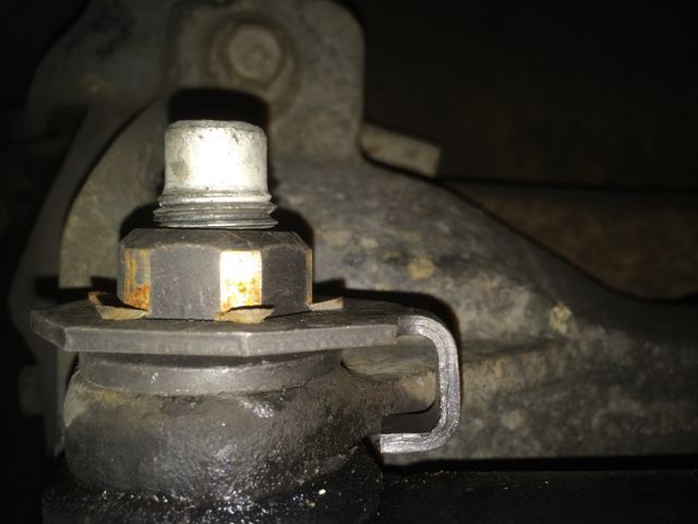 The nut is swaged onto the flange (actually it's a flange nut, the separate flange, then the peaks of the nuts hex are swaged to capture the separate flange), then as its assembled at the factory the flange will lock onto the brackets arm to resist turning. Fords only concern is assembly. Sean's image doesn't show it in the factory position, this is.