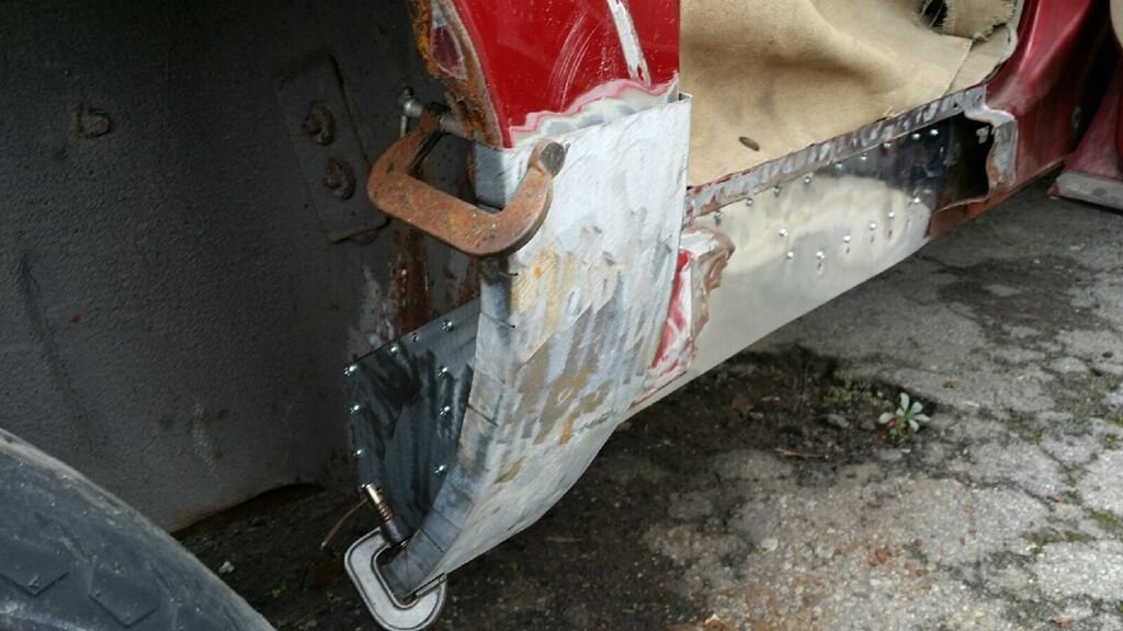 Did a lot today. Flap disc/wire wheel/wire brush/scraped the rockers and repair section under the truck. Applied some rust converter, then blasted some Raptor UPOL on the affected areas and wheel wells to pretty them up a bit. Also polished out the color blend on the left side of the truck. The right quarter will need to be wetsanded and cut/buff'd another day. Then I moved on to mounting the cladding, made sure to use all new hardware. Had some challenges as the newly built doglegs are not quite the same EXACT shape as the originals but I made it work. Still missing the left inner rear fender liner and the SUPER DUPER rare OEM FoMoCo mudflap, as they were victimized by an exploding General months ago.