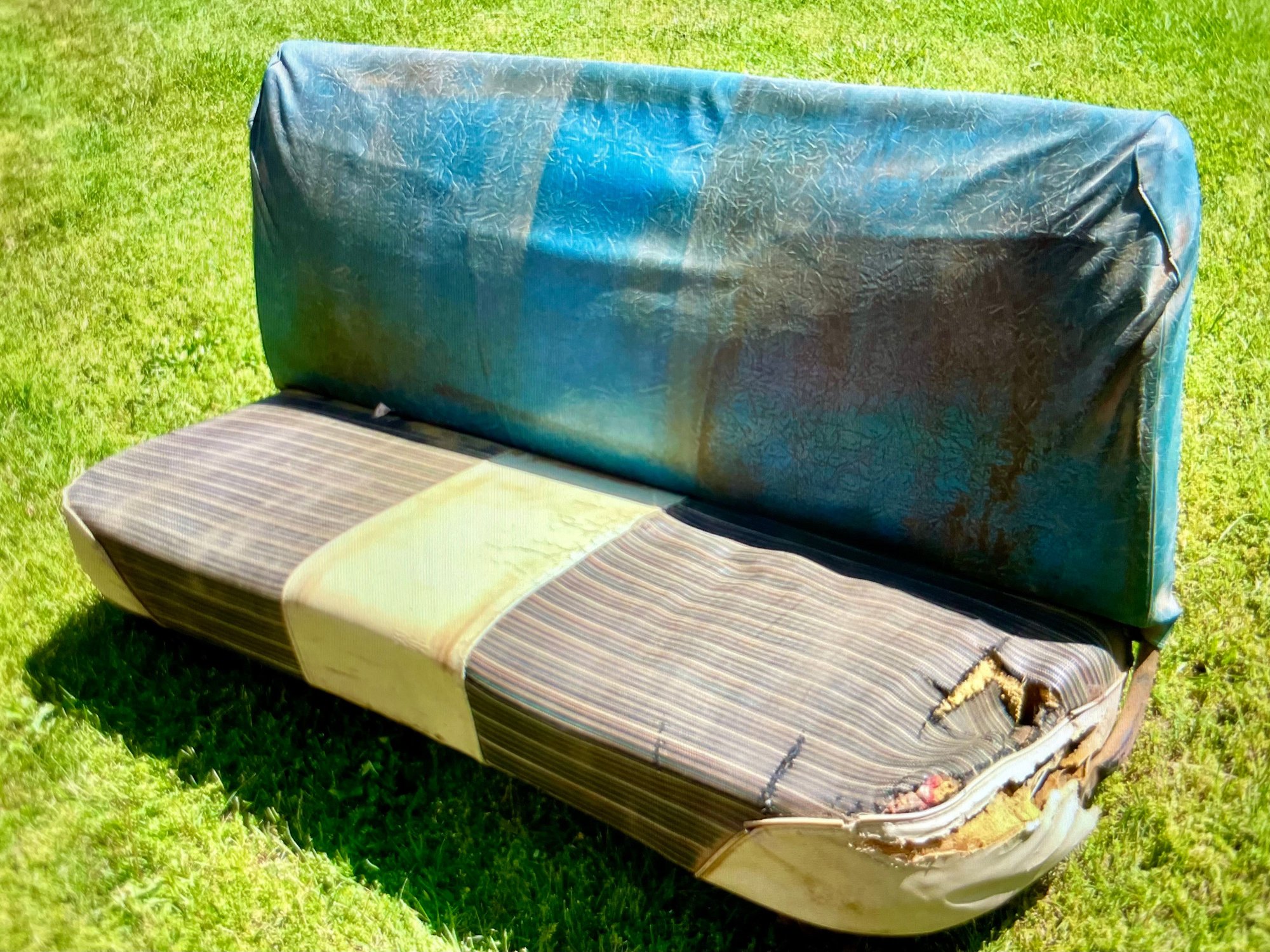 The seat was one of my first projects. Wife wouldnt ride in it until I did.... When I took the ratty cover off to get to the frames, the original seat was still there!