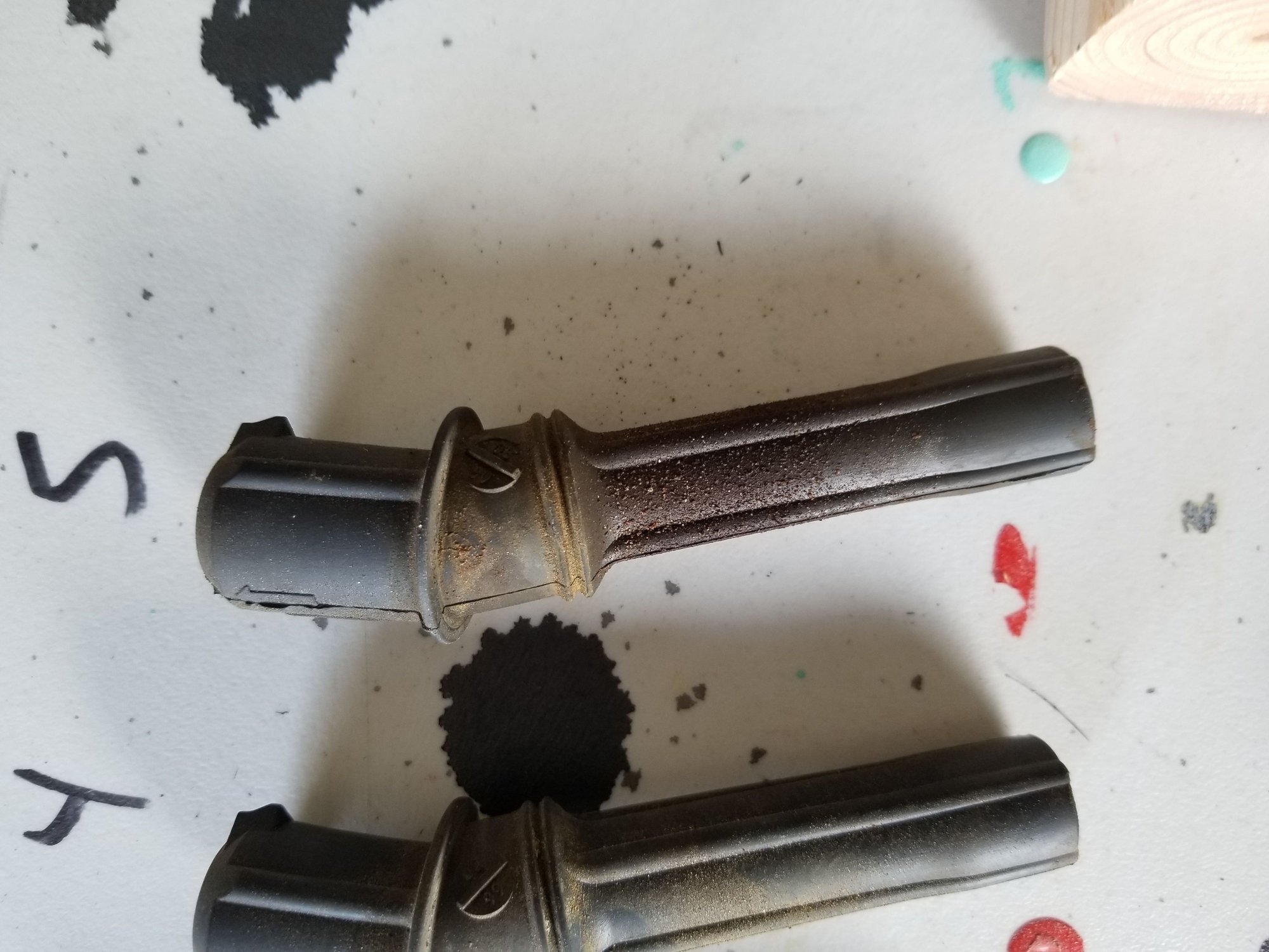 1. plugs for cylinder #5, #8, and #9 were all loose. #5 was 1 full revolution. Other 2 were less than 1/2 a turn. You can see the crud on boots for #5/9. Threads were gunky as well