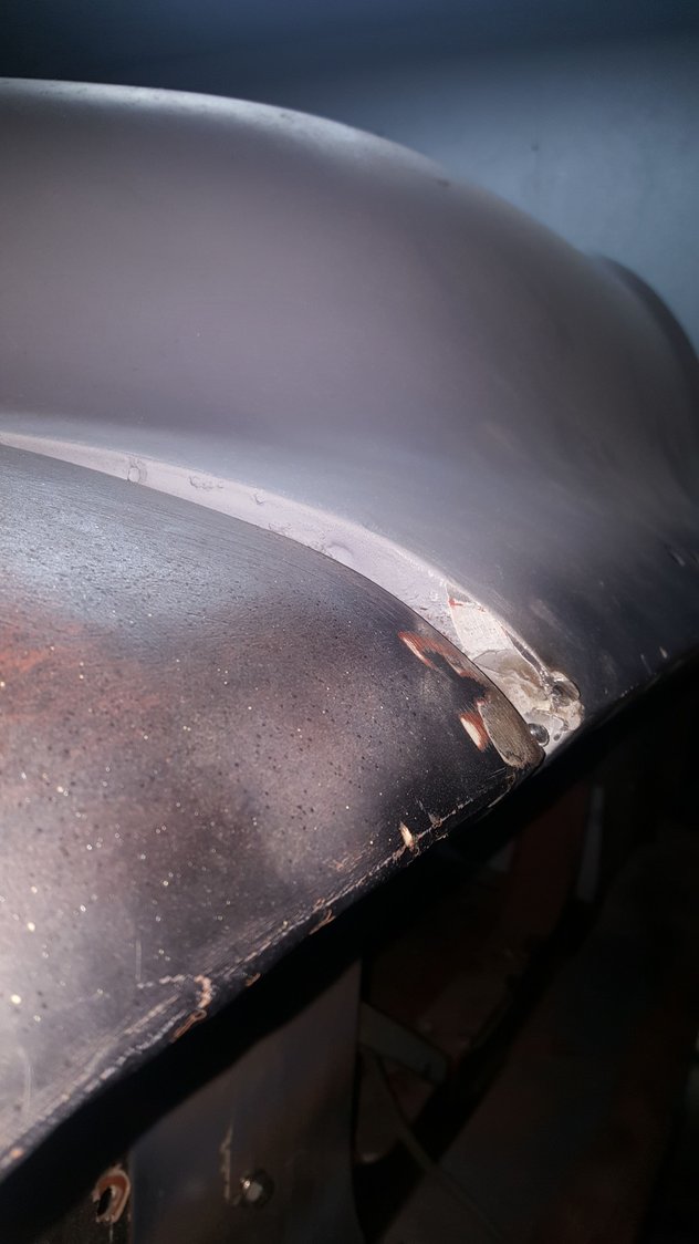 This photo shows how much metal i have to add to the fender to bring it up to match the hood line! The two corners of the hood are like this, i can do something with this i think
