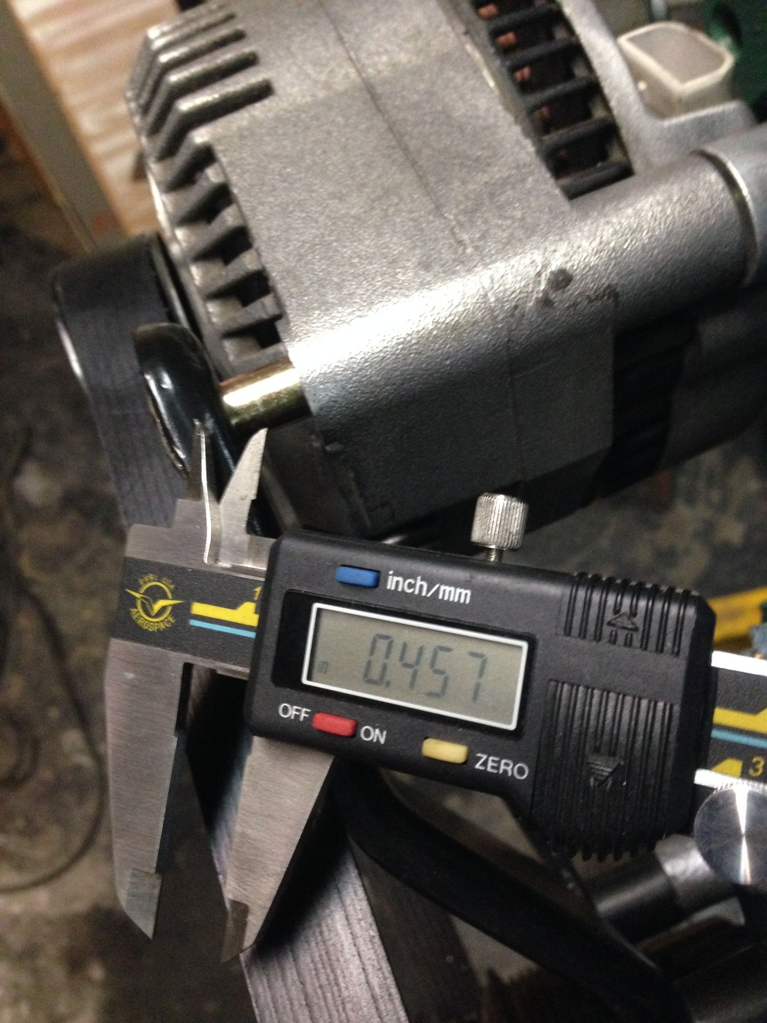 I measured 0.328” (approx. 5/16”) for the top portion of the alternator bracket. This measurement was wrong – read the note below.