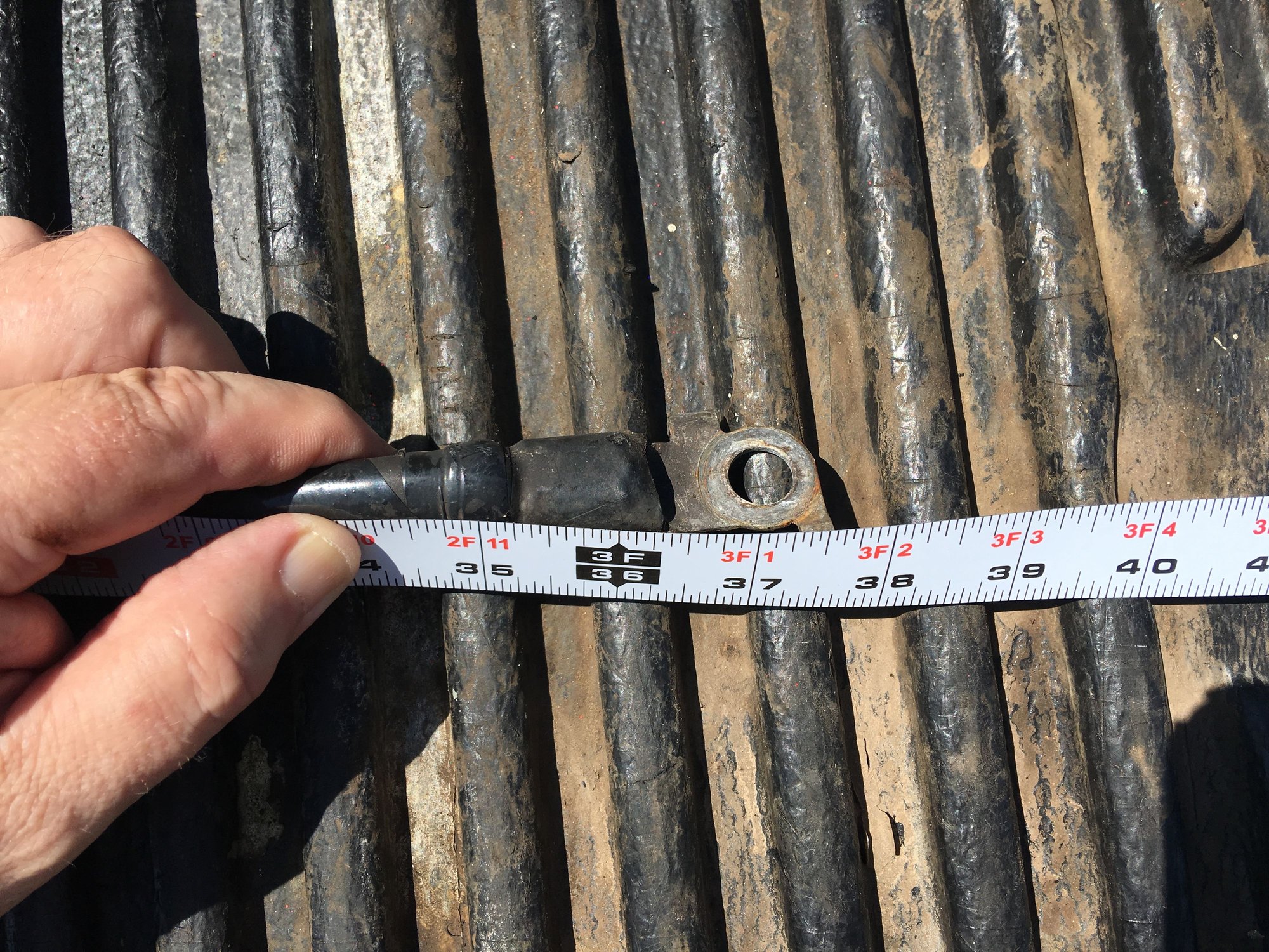 Okay, Total length of cable, measured from center of eyelet that would be block ground point to el of battery clamp (where the clamp itself makes a 90 degree turn, but still is metal), is 36". From same base metal point to center of eyelet that "could" go to ABS ground is 12". I'm dropping it off at the post office in a few minutes...