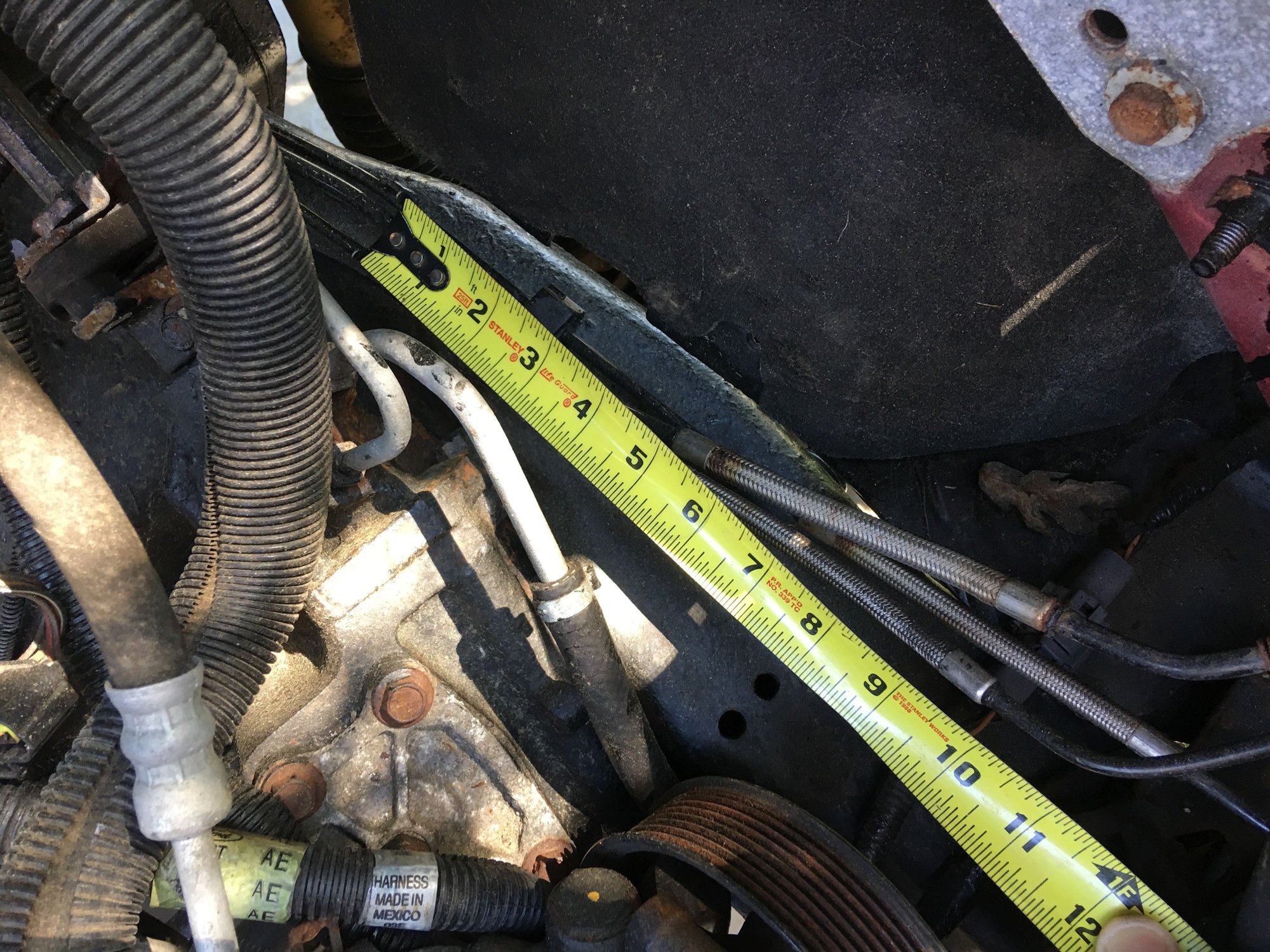 Dang -- I knew I shouldn't have boxed it up yet! I'll go get that measurement, plus the Battery side small branch length (that would go to the ABS ground perhaps). No picts of any value looking down - I didn't even take this out of the house. From way back when, we determined I'd need something like 2' to get to the frame (common) ground point from the block -- I have 2 - 3/0 cables that are 12" and I played around with was there any way to use what I had in hand. Back then I think you said better to get a single cable than to tie those together to get the length needed...
