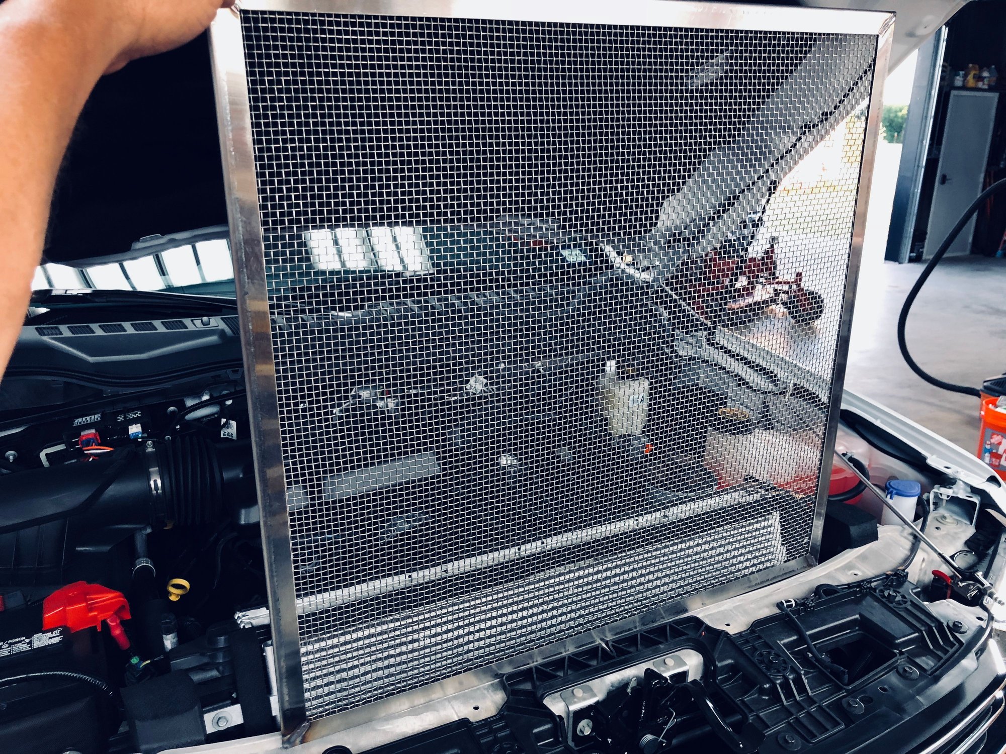 Bought the woven stainless screen from Summit Racing and had a sheet metal shop hem the edges and weld it. Back side has 1/2" felt around the edges so theres no metal to metal contact with the radiator.
