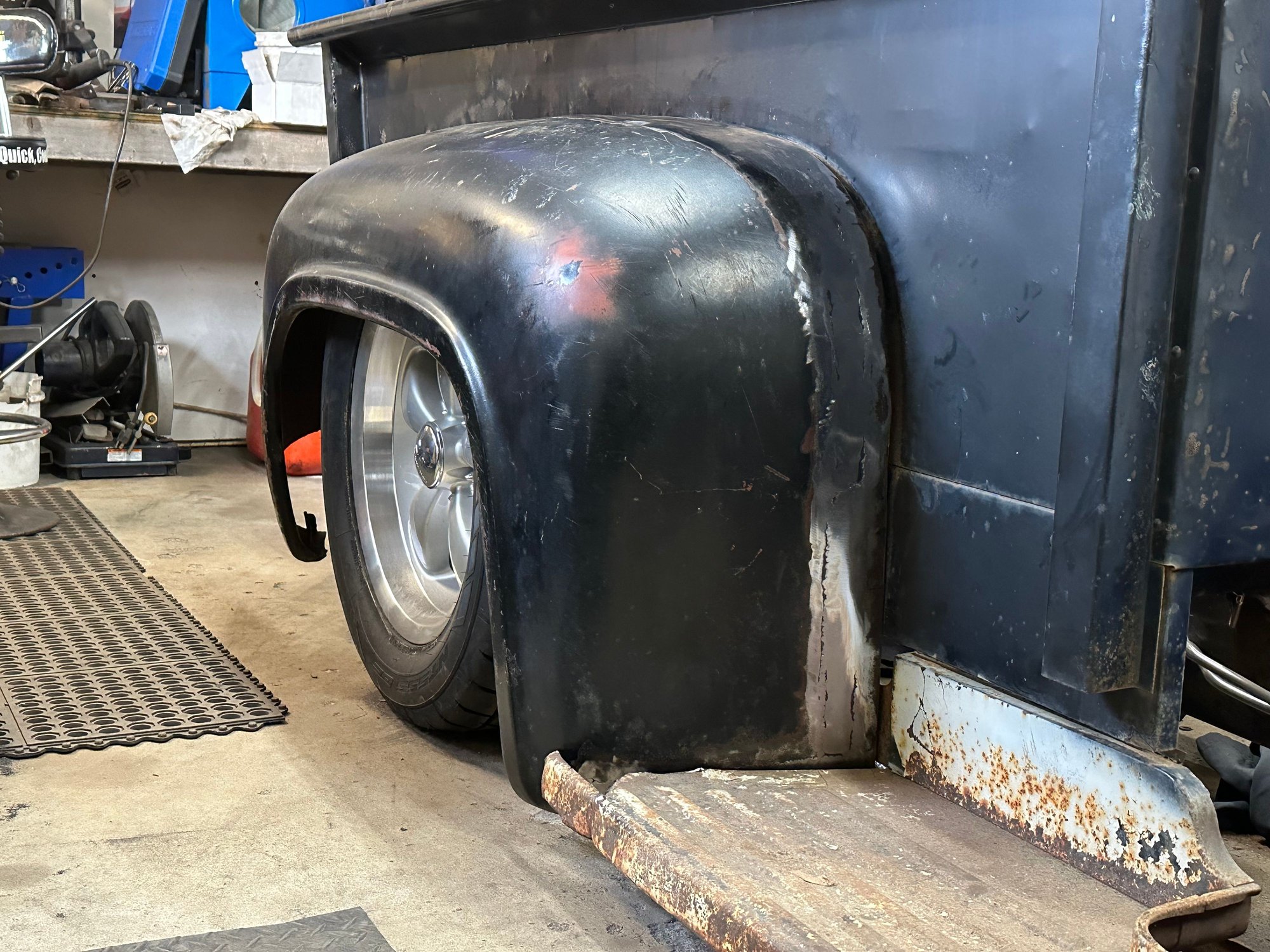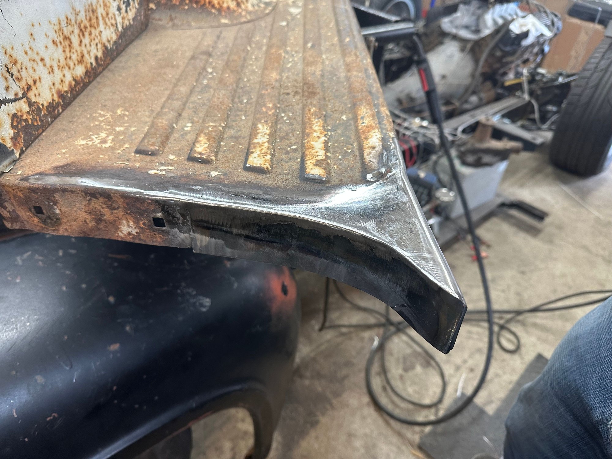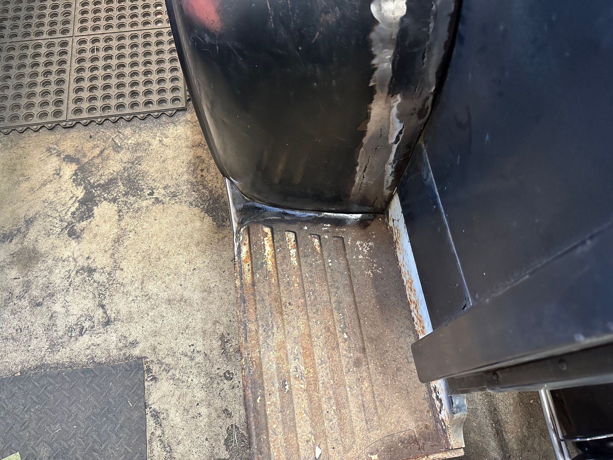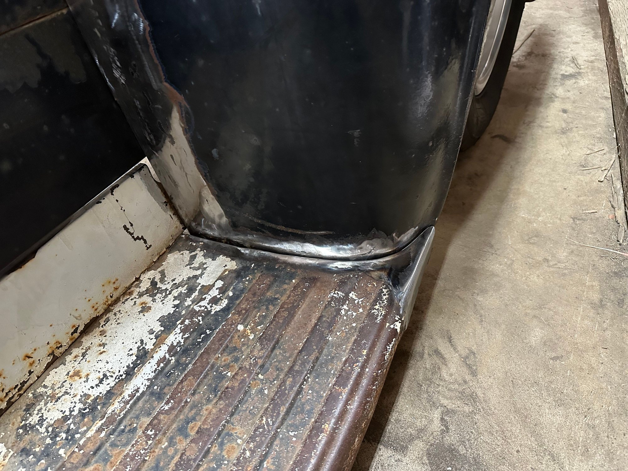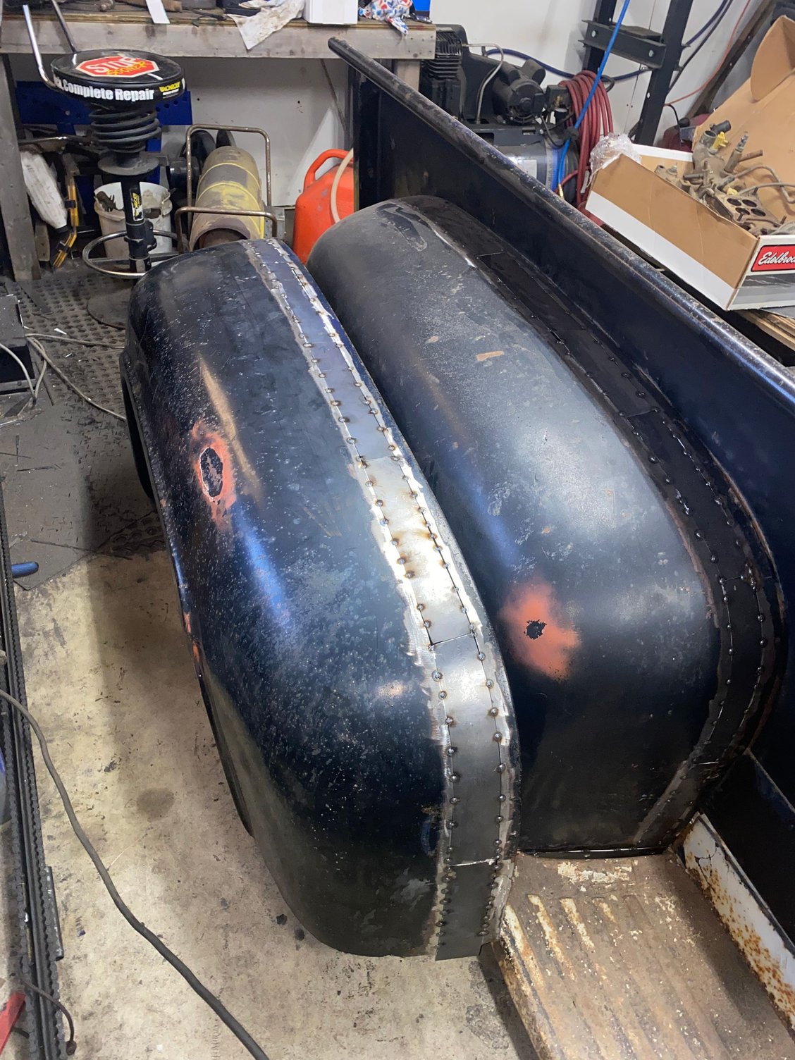 Wow. Long long over due for an update. I have got a few things done. I widen the rear fenders 1.5” in the front and flared out to 2” in the rear for of the fender. They are not perfect by any means but for my first attempt at something like that I’m pretty happy with the overall result. Then came the running boards. I modified them to fit the rear fenders and should bolt up nicely now and are nice and flush. Once again not perfect. But I’m happy. They are old and beat up. So once I was done with that it was seeding time so I spent a month away from home seeding and spraying. And just a few days ago I finally lifted the cab off my trailer and set it on the frame for the first time in many years. I know I’m jumping the gun. I have a couple cab corners to do along with a bunch of other stuff.