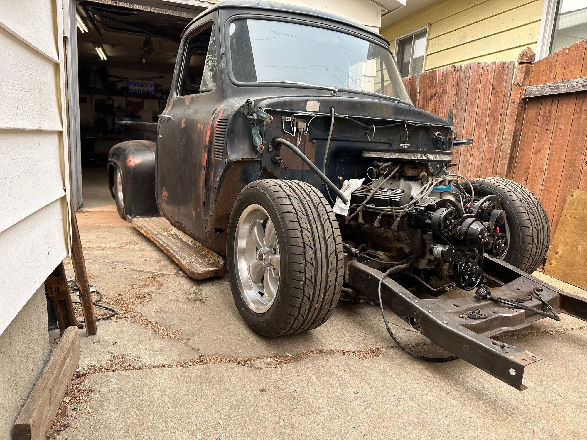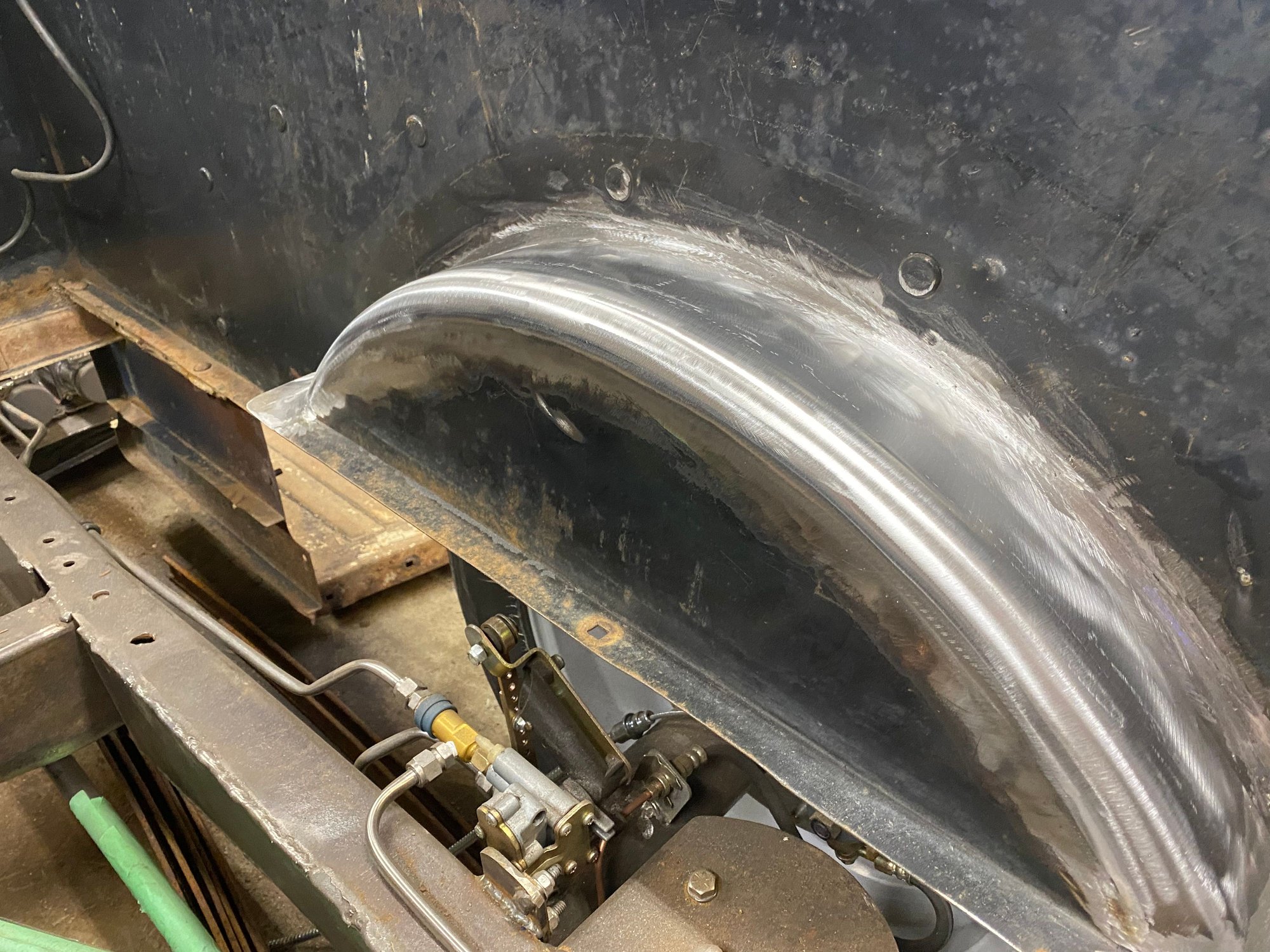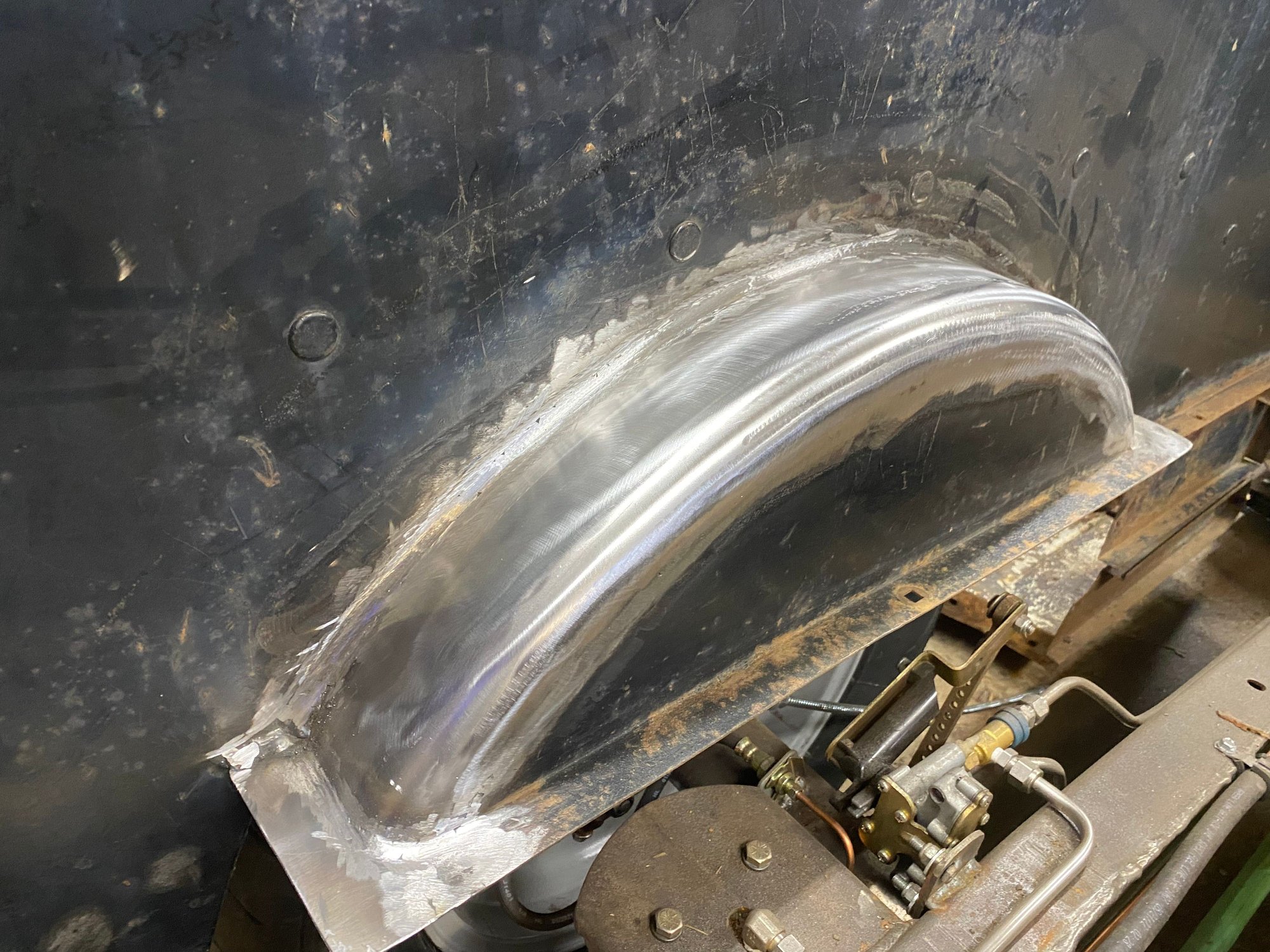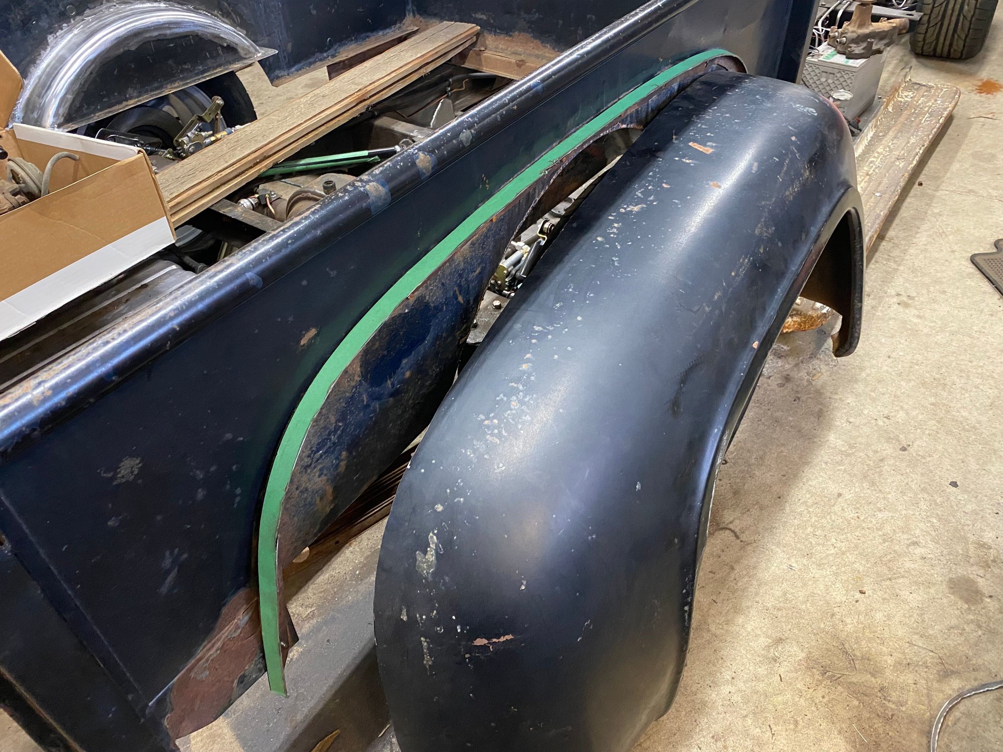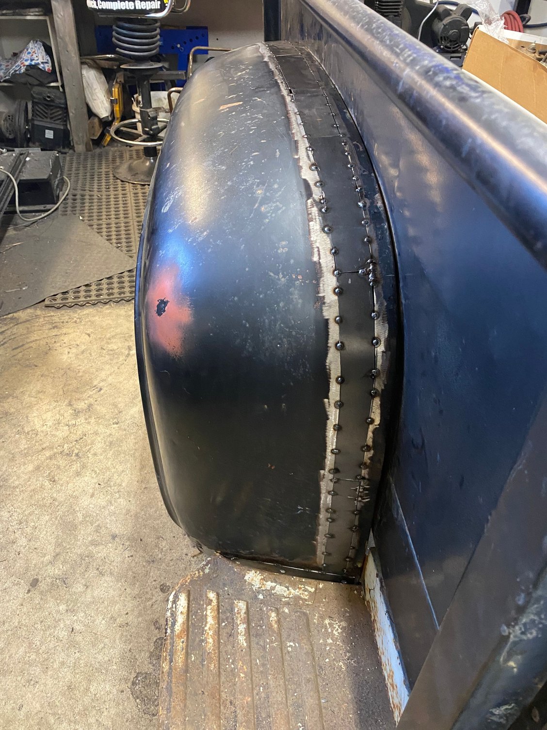 Wow. Long long over due for an update. I have got a few things done. I widen the rear fenders 1.5” in the front and flared out to 2” in the rear for of the fender. They are not perfect by any means but for my first attempt at something like that I’m pretty happy with the overall result. Then came the running boards. I modified them to fit the rear fenders and should bolt up nicely now and are nice and flush. Once again not perfect. But I’m happy. They are old and beat up. So once I was done with that it was seeding time so I spent a month away from home seeding and spraying. And just a few days ago I finally lifted the cab off my trailer and set it on the frame for the first time in many years. I know I’m jumping the gun. I have a couple cab corners to do along with a bunch of other stuff.