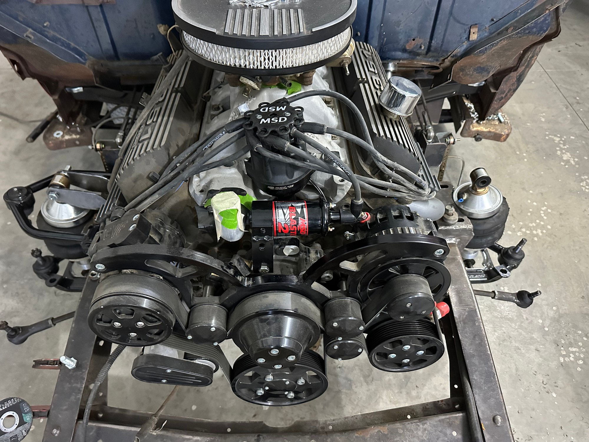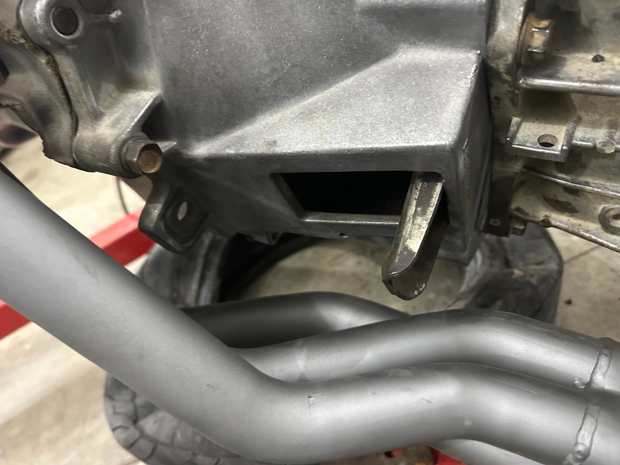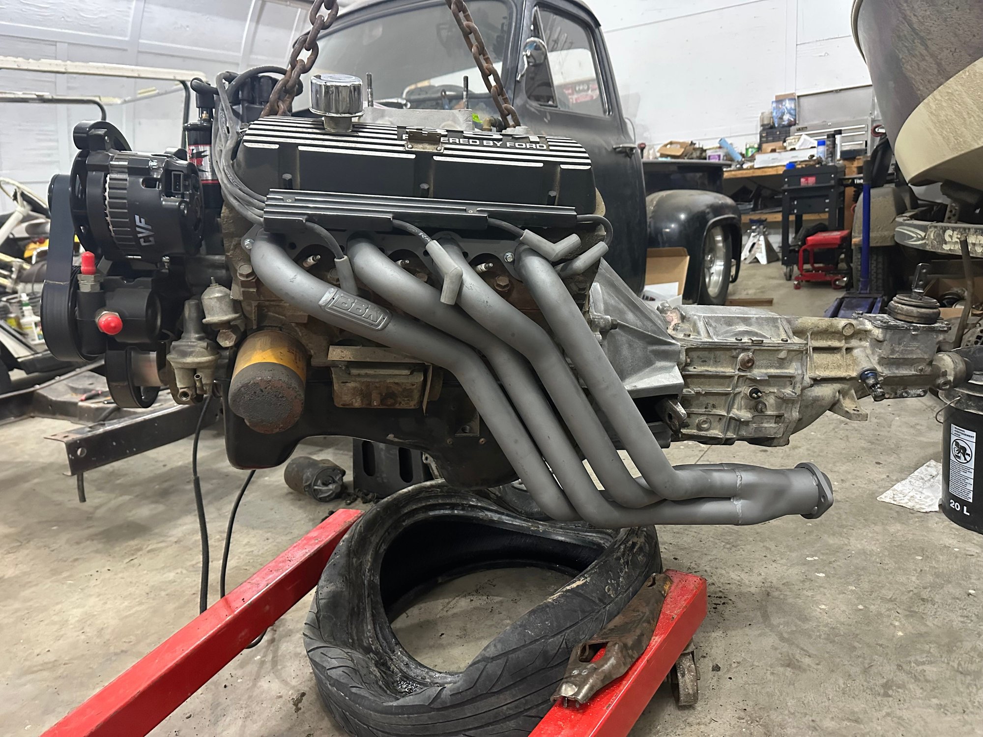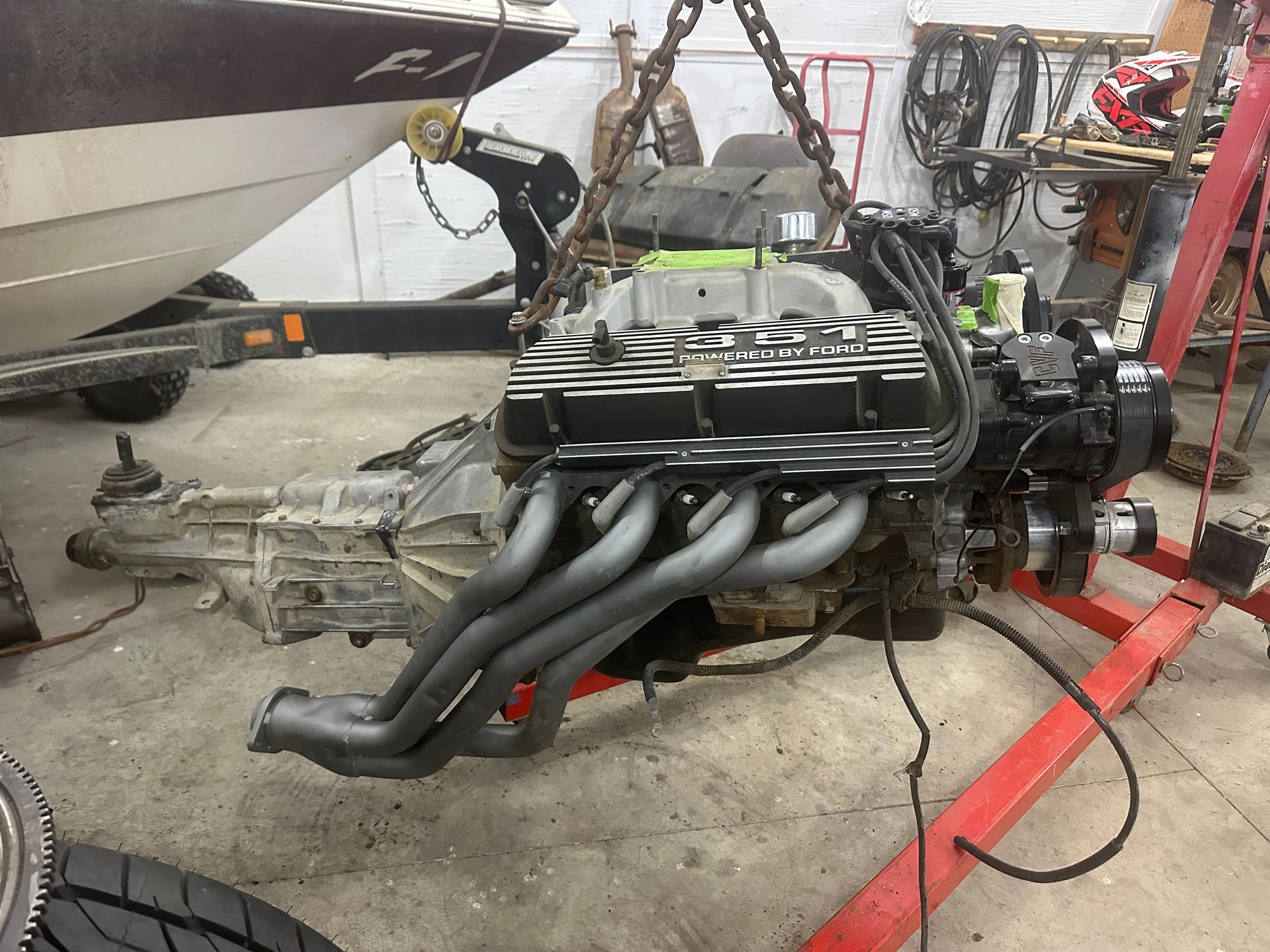 Switching over to a T5 manual transmission. Came out of 94 Mustang GT. The headers I have were for a fox body so I had to swap out the bell housing input shaft and bearing retainer for fox body stuff. My head is clear nicely now just have to make up a new transmission, crossmember and get it mounted. I have all my steering components so I can work on that and get it mocked up.