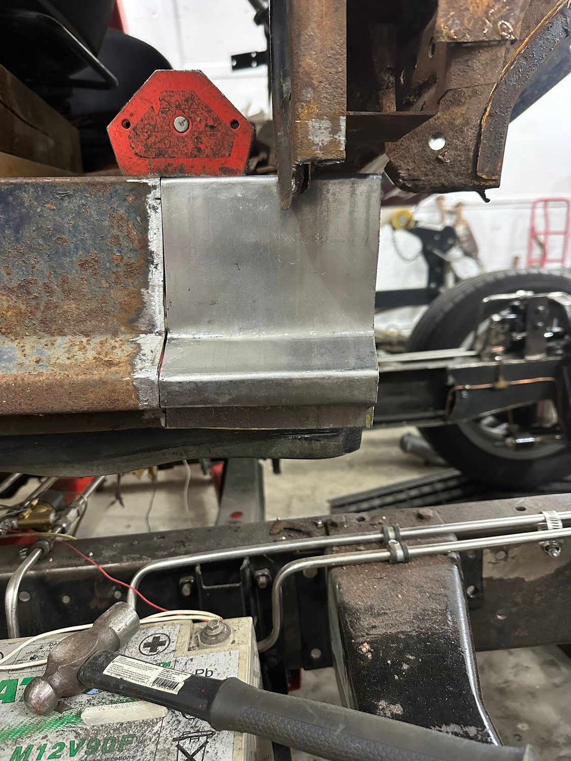 Cut a bit of the rocker panel out and the small patch of the floor in the same area. Making my own rocker panel, would be much easier with a bender that’s for sure but still doable. Still have to make the piece that goes down then weld it all together. The original appears to be two piece with an over lap. The new one are a one piece.