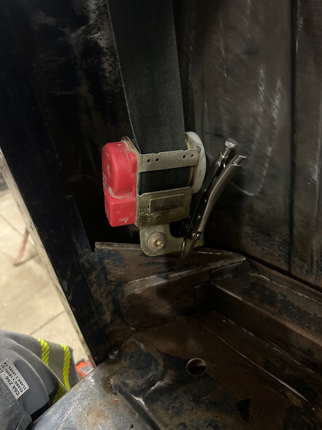 I figured before I put the sound deadener on the floor. I should maybe do some seatbelts. I kind of copy John’s design a little bit, they are a little smaller than the ones that you would buy. I’m not sure where to mount the lower retractor because I would like to purchase the ABS back wall cover and not sure how that’s gonna factor in