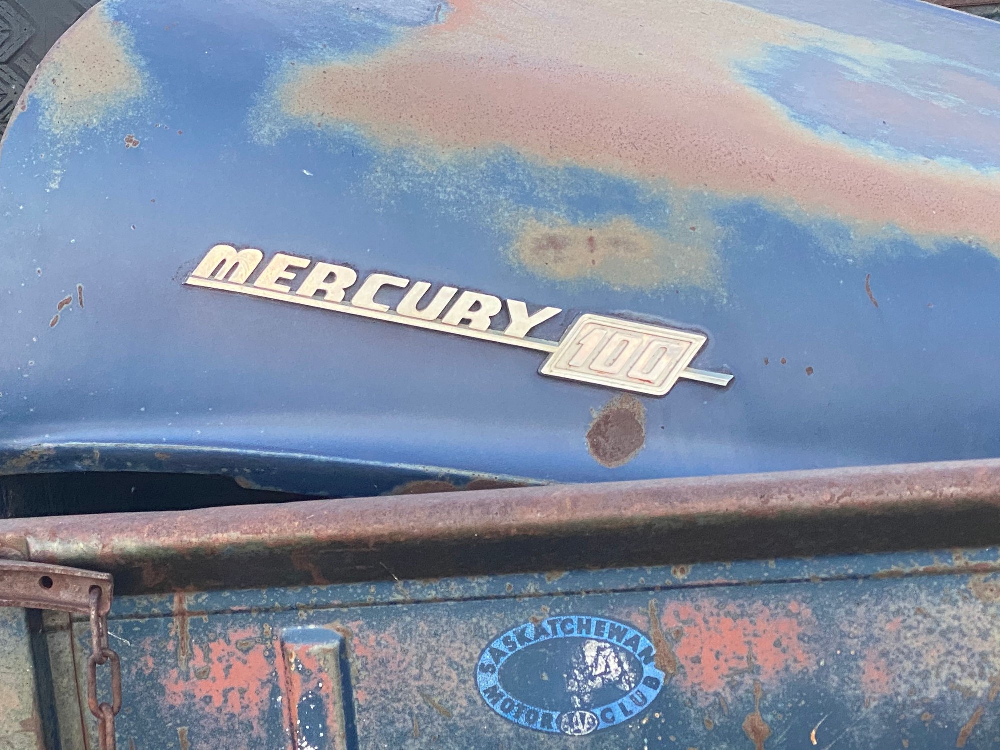 Radio is definitely not stock or period correct, a stock radio would be round and mounted in the dash under the ash tray. I have no idea on the hood ornament . Rather neat looking. Is there any wires leading to it, I was wondering if the eyes light up.? Your pictures answered a question I had if Mercury used the Custom Cab badges. There are several things I'd love to have from that truck for mine...lol